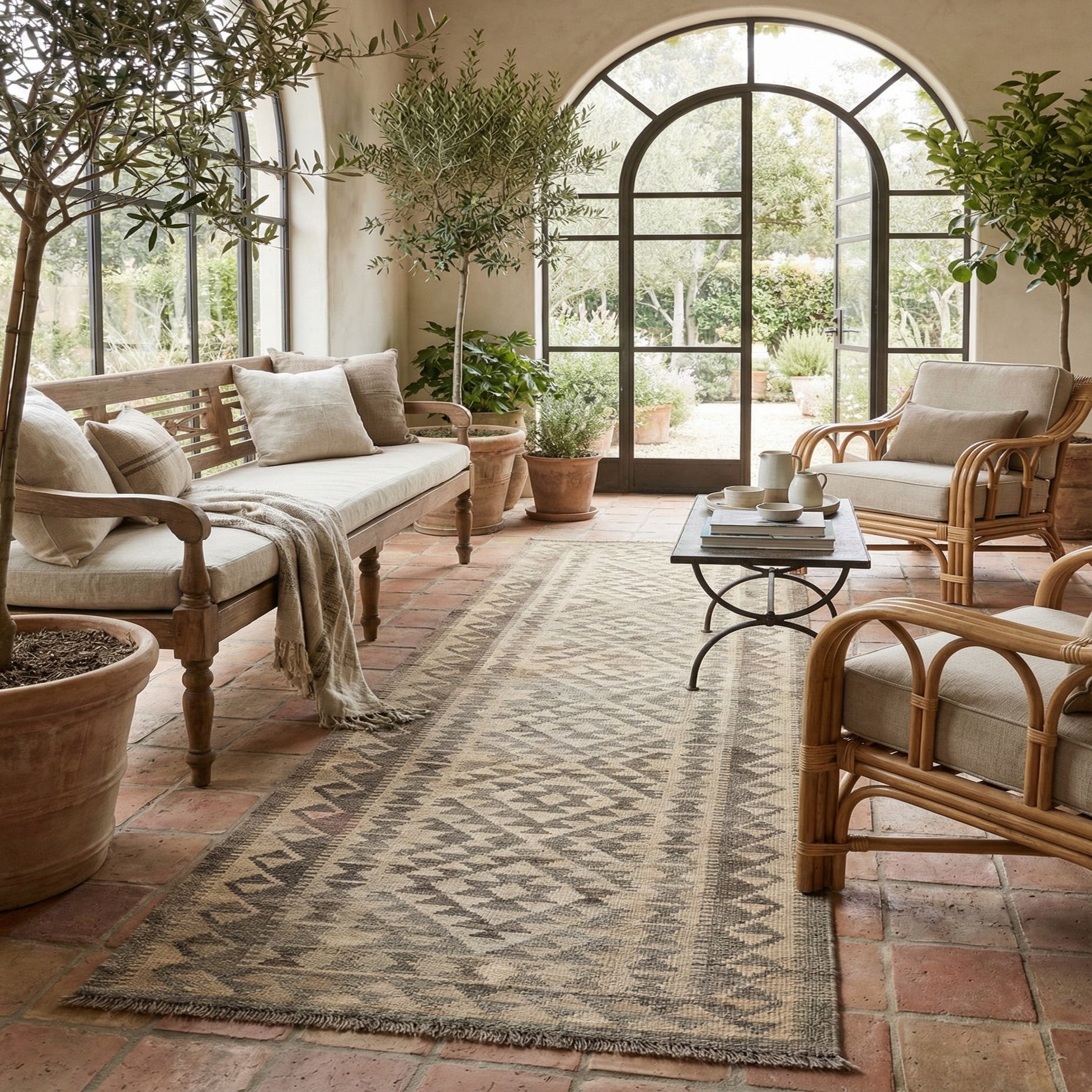 2' 10 x 9' 10 Hand Woven Kilim Maymana Wool Runner Rug
