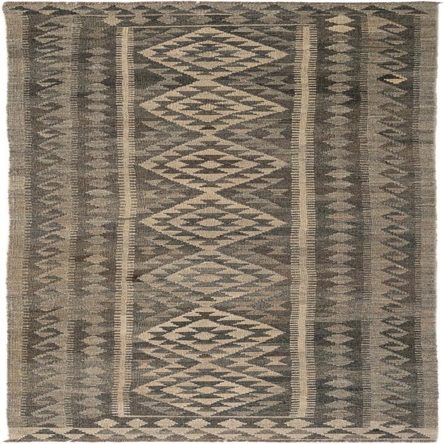 Primary color is Gray. Colors in this rug include: Gray, Brown, Ivory.