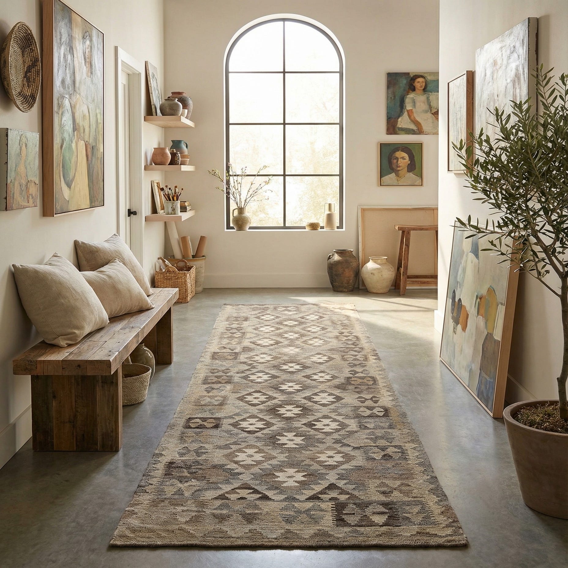 Primary image 2' 9 x 9' 9  Hand Woven Kilim Maymana Wool Runner Rug