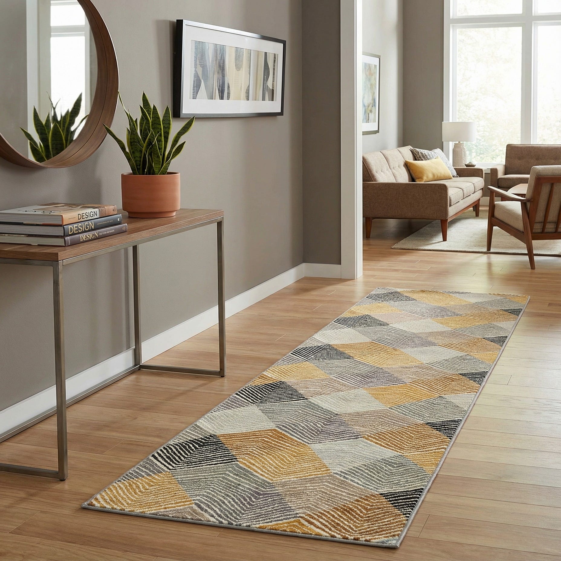Primary image 2' 7 x 10'  Washable Modern Indoor / Outdoor Runner Rug