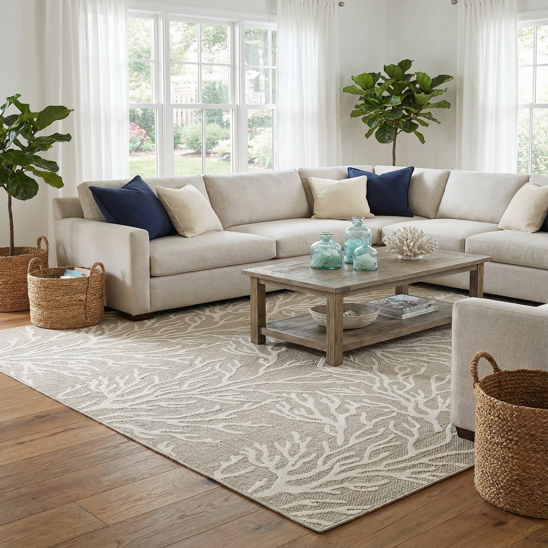 10' x 10' Washable Coastal Indoor / Outdoor Square Rug