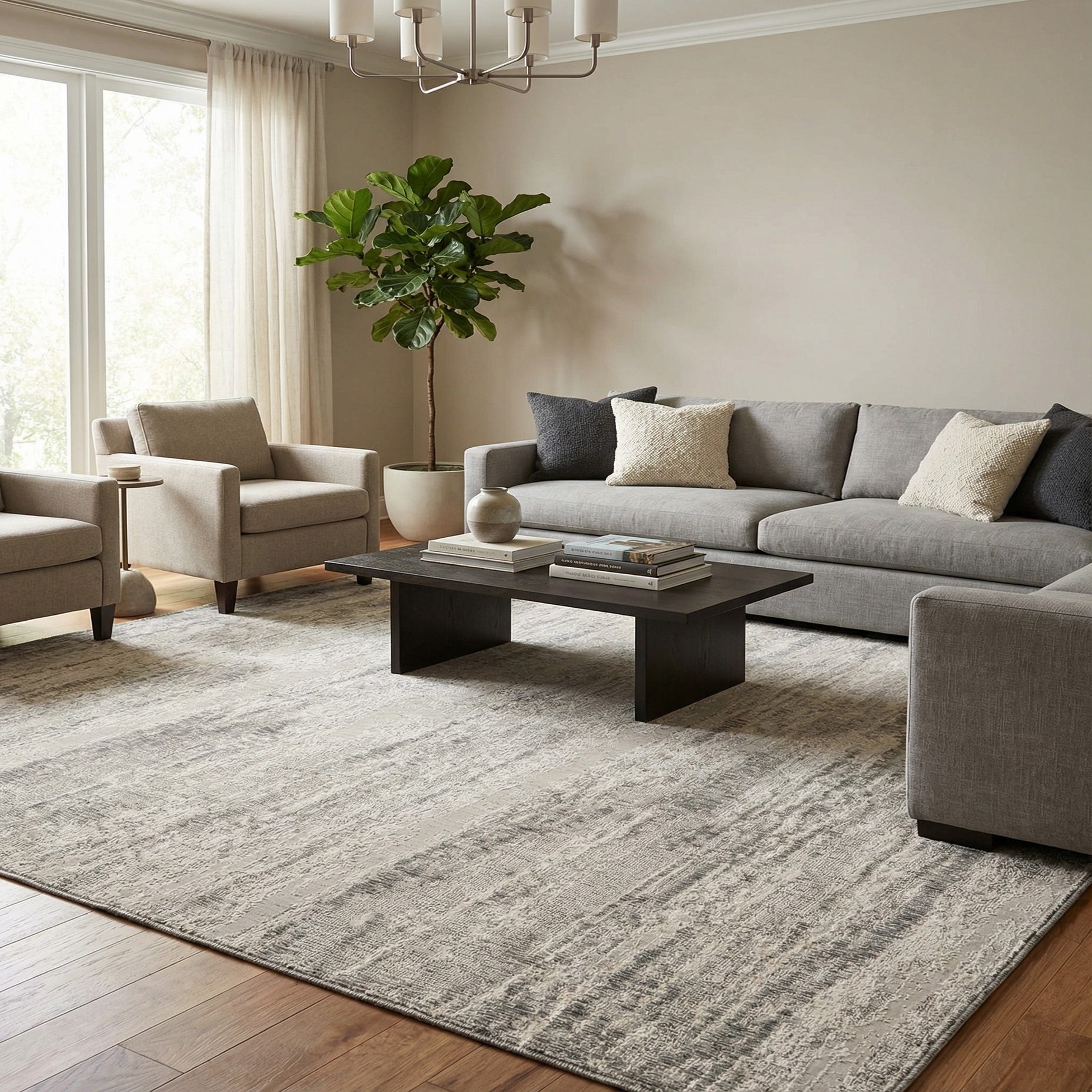 Primary color is Gray. Colors in this rug include: Gray, Ivory.