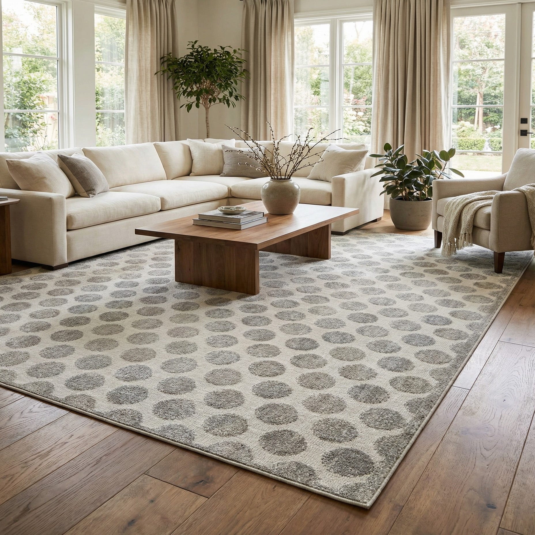 Primary color is Gray. Colors in this rug include: Gray, Ivory.