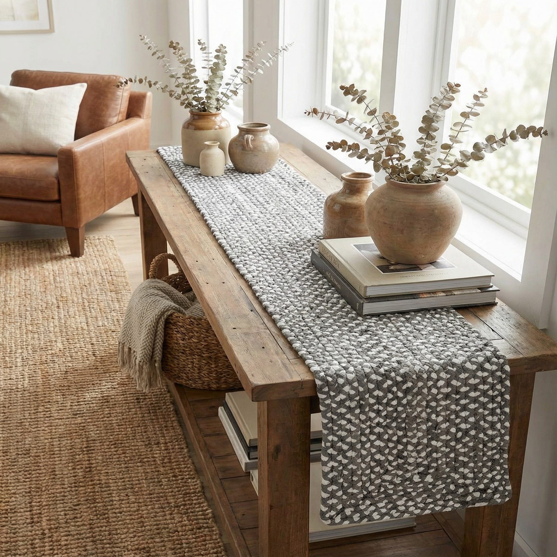 1' 2 x 10' Hand Braided Chindi Table Runner Rug