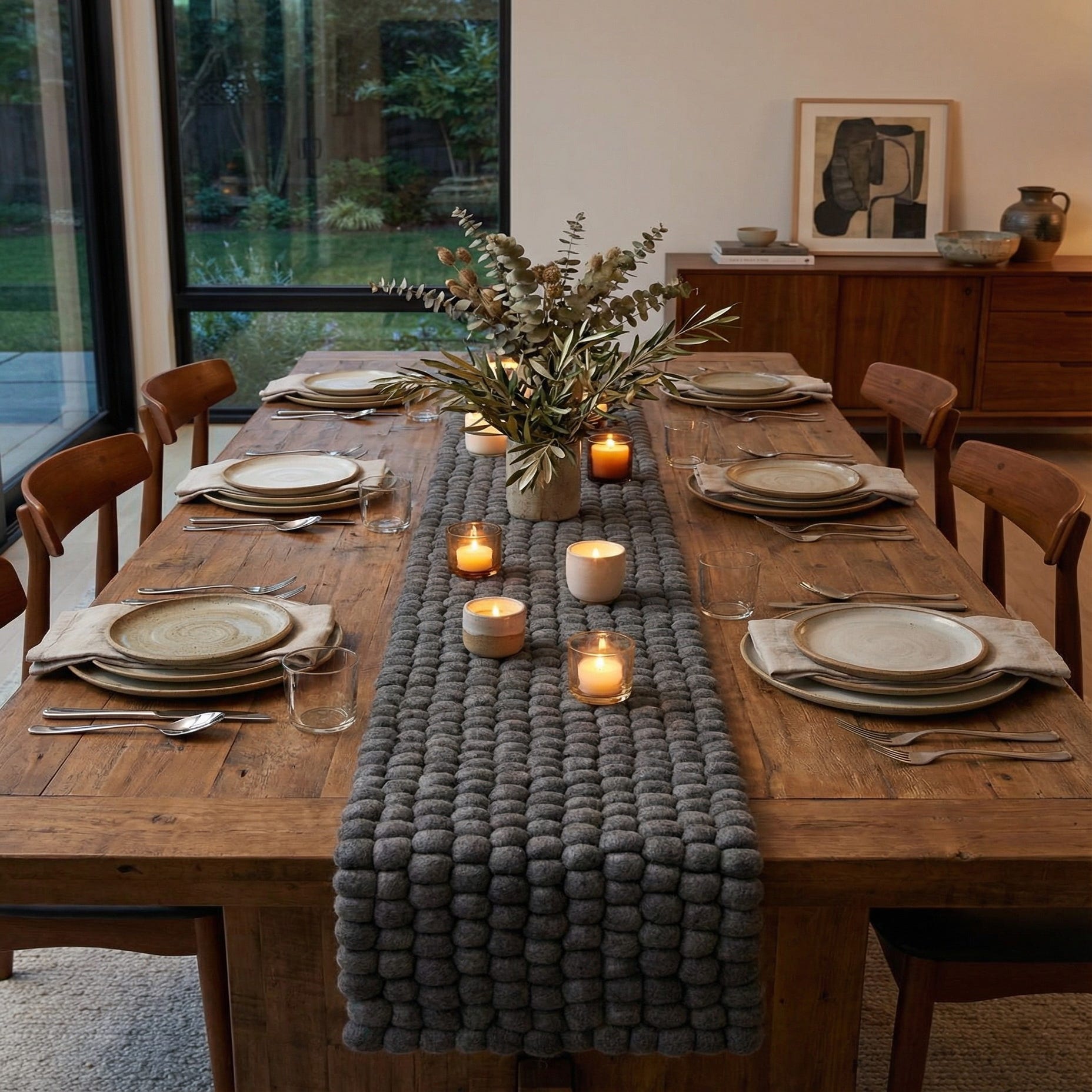 1' 2 x 10' Hand Woven Felt Ball Wool Table Runner Rug