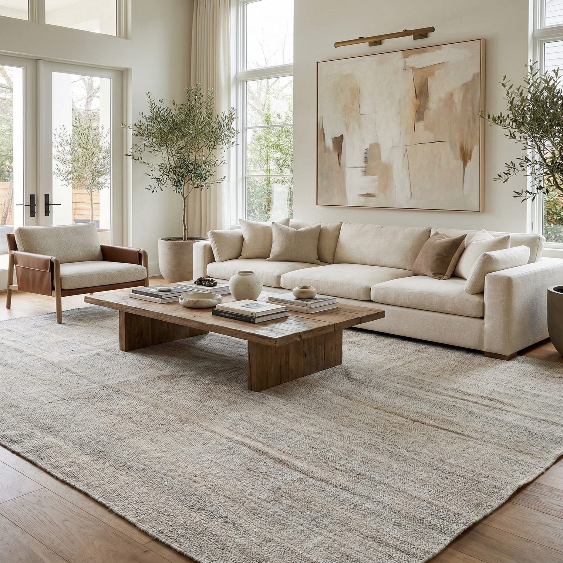 Primary color is Gray. Colors in this rug include: Gray, Ivory.