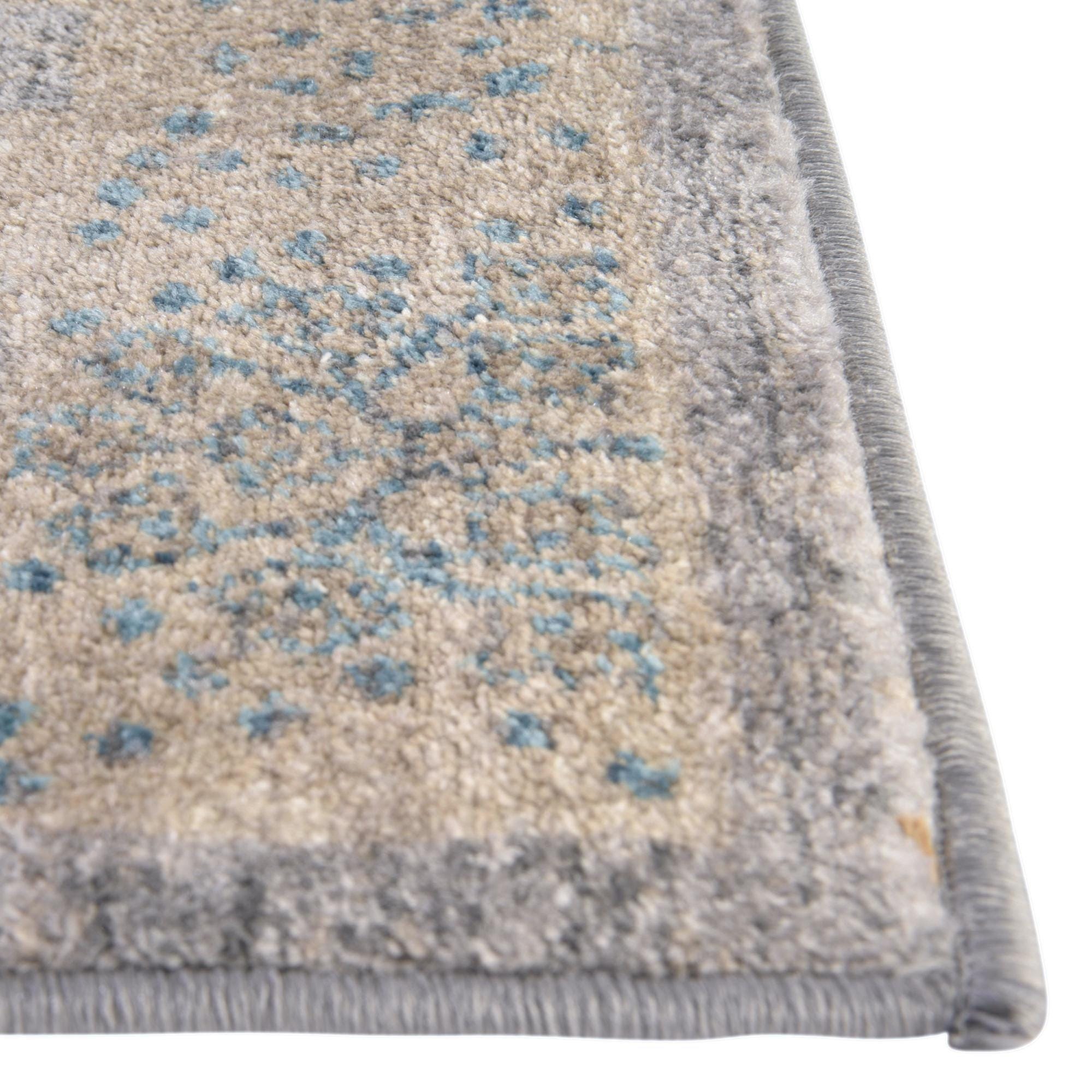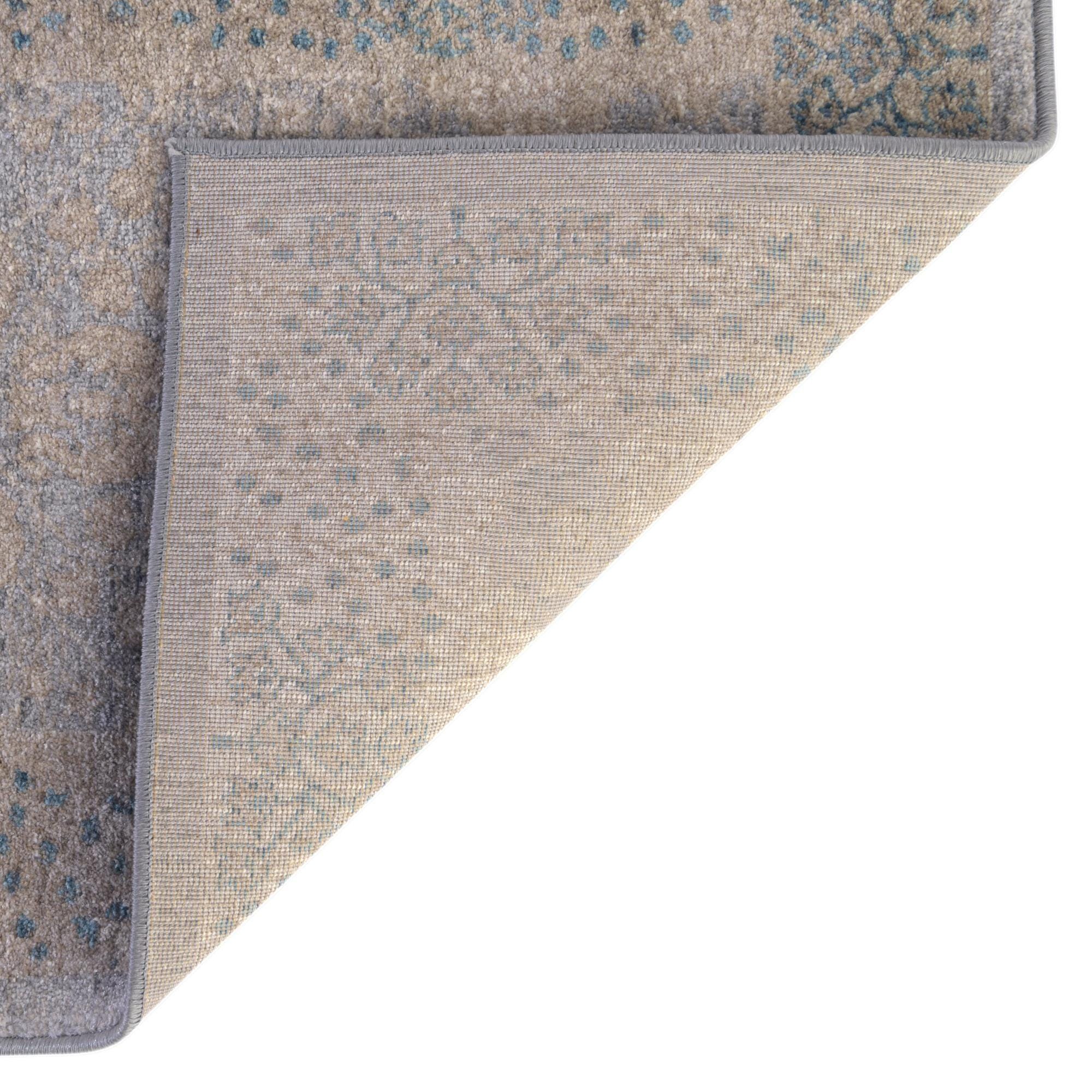 Primary color is Gray. Colors in this rug include: Gray, Ivory, Light Blue.