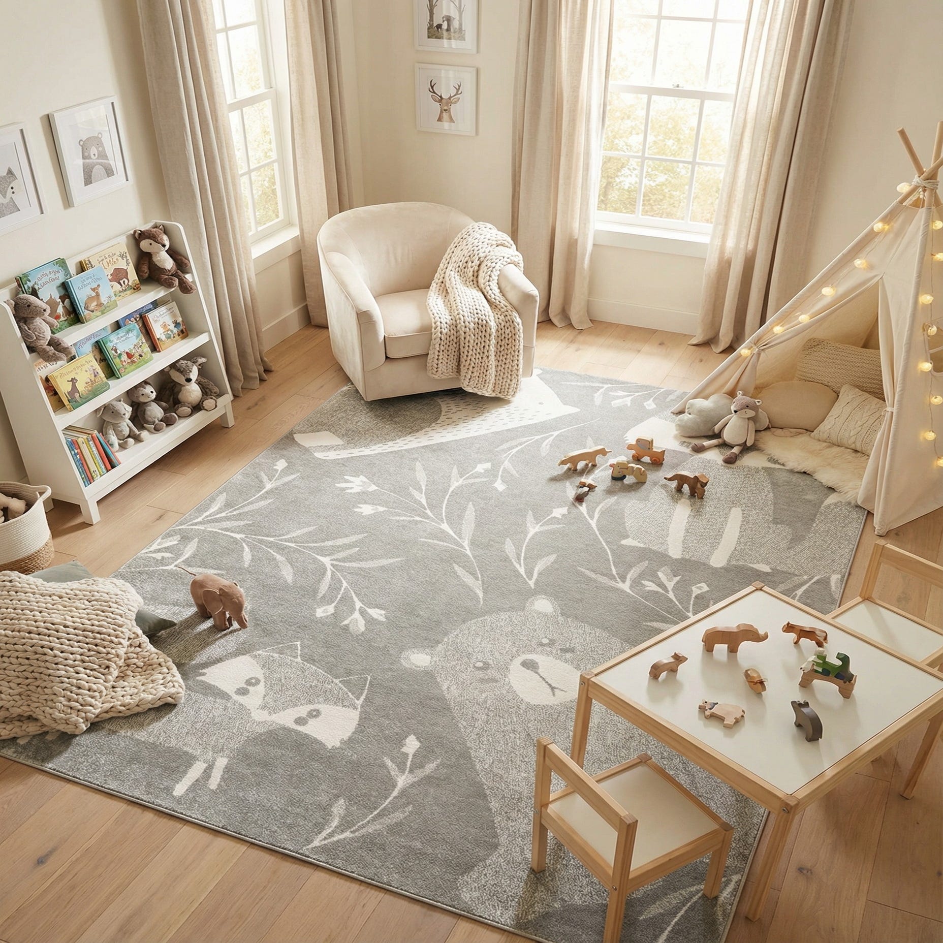 Primary color is Gray. Colors in this rug include: Gray, Ivory.