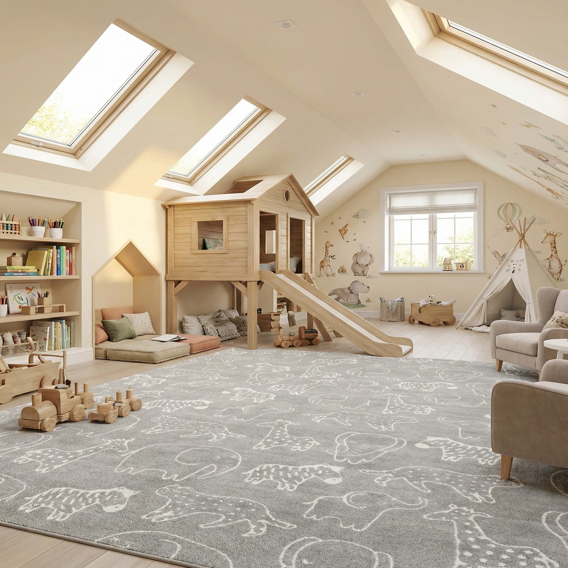 Primary color is Gray. Colors in this rug include: Gray, Ivory.