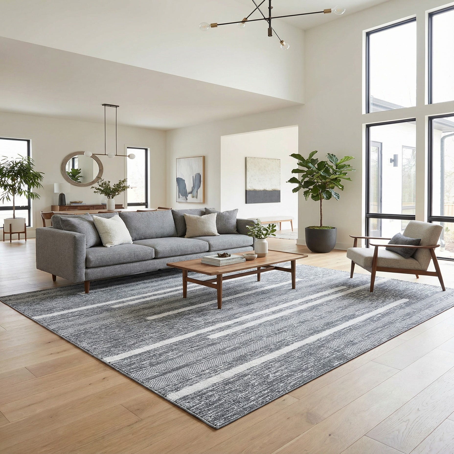 Primary color is Gray. Colors in this rug include: Gray, Ivory.