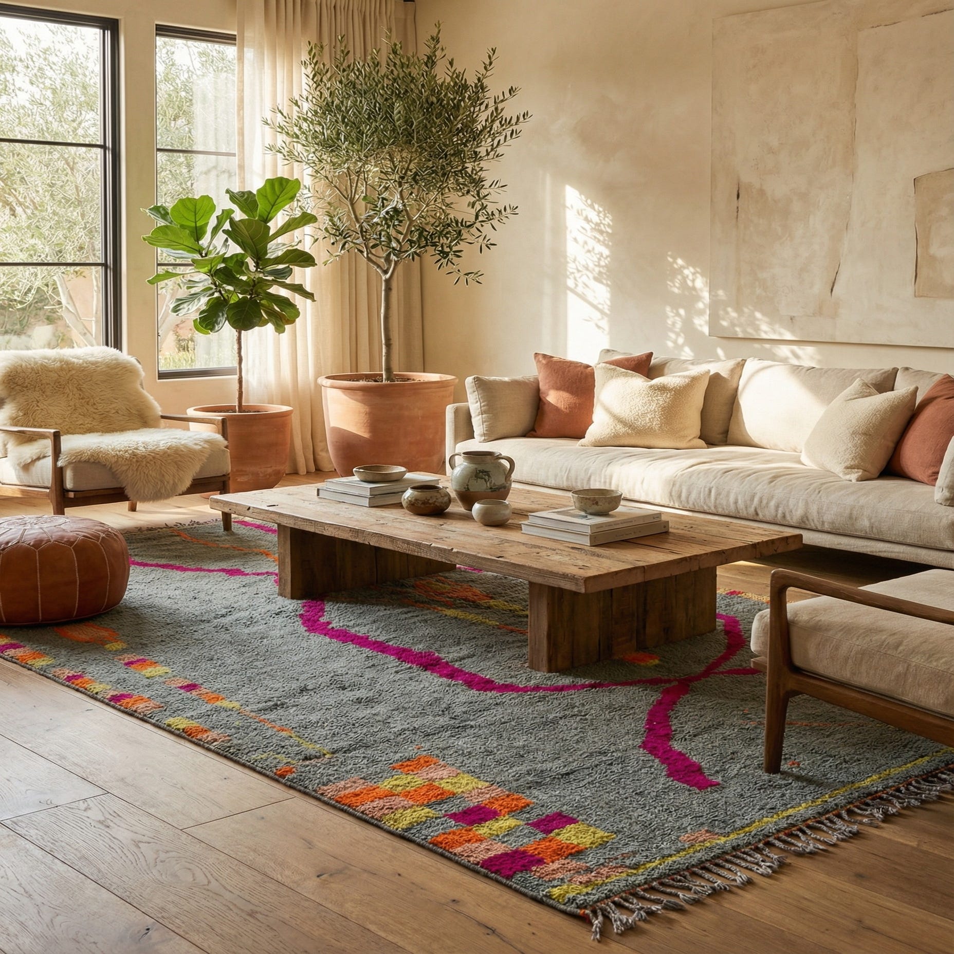 Detail image of 6' 3 x 11'  Hand Knotted Moroccan Wool Runner Rug