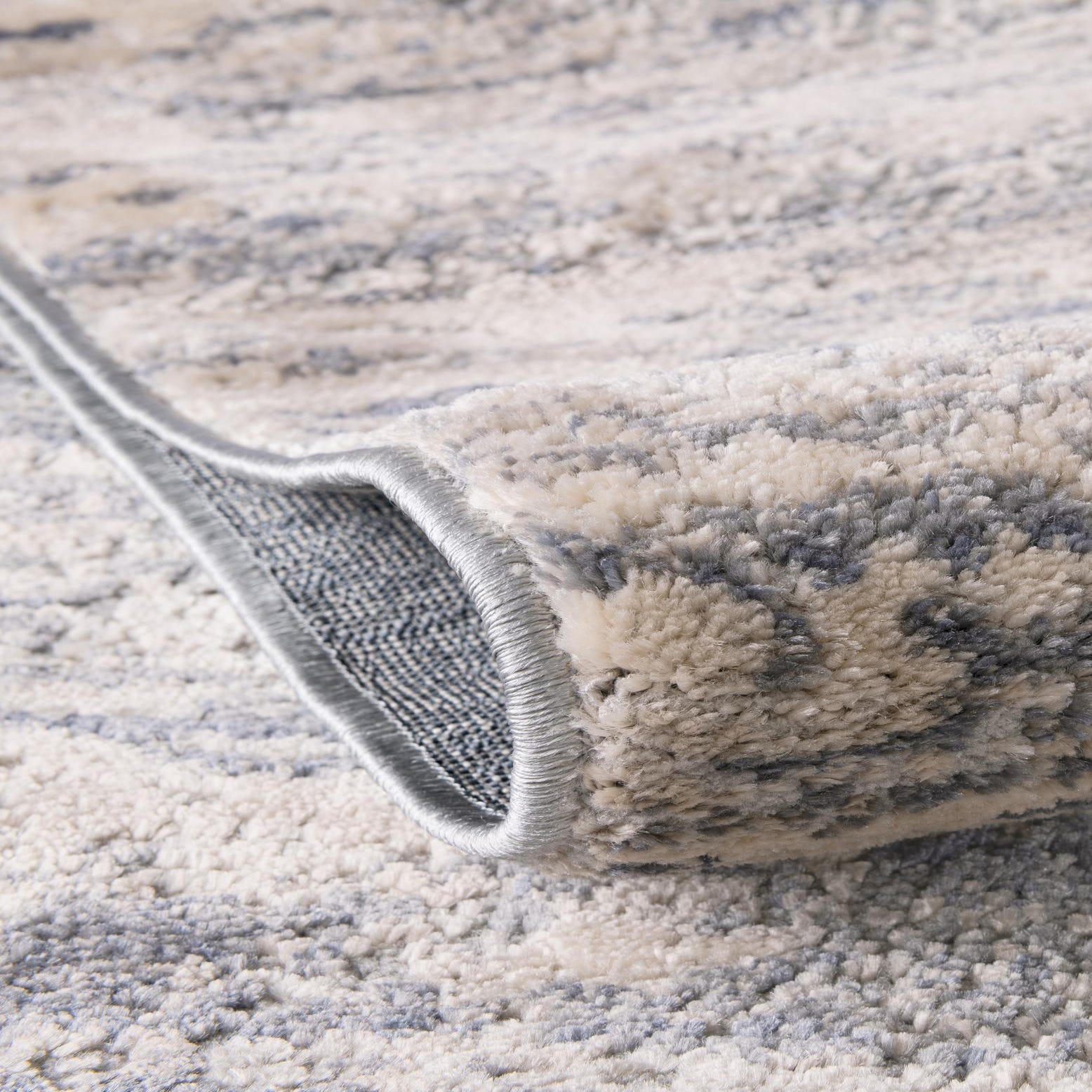 Primary color is Gray. Colors in this rug include: Gray, Ivory, Beige, Blue, Navy Blue.