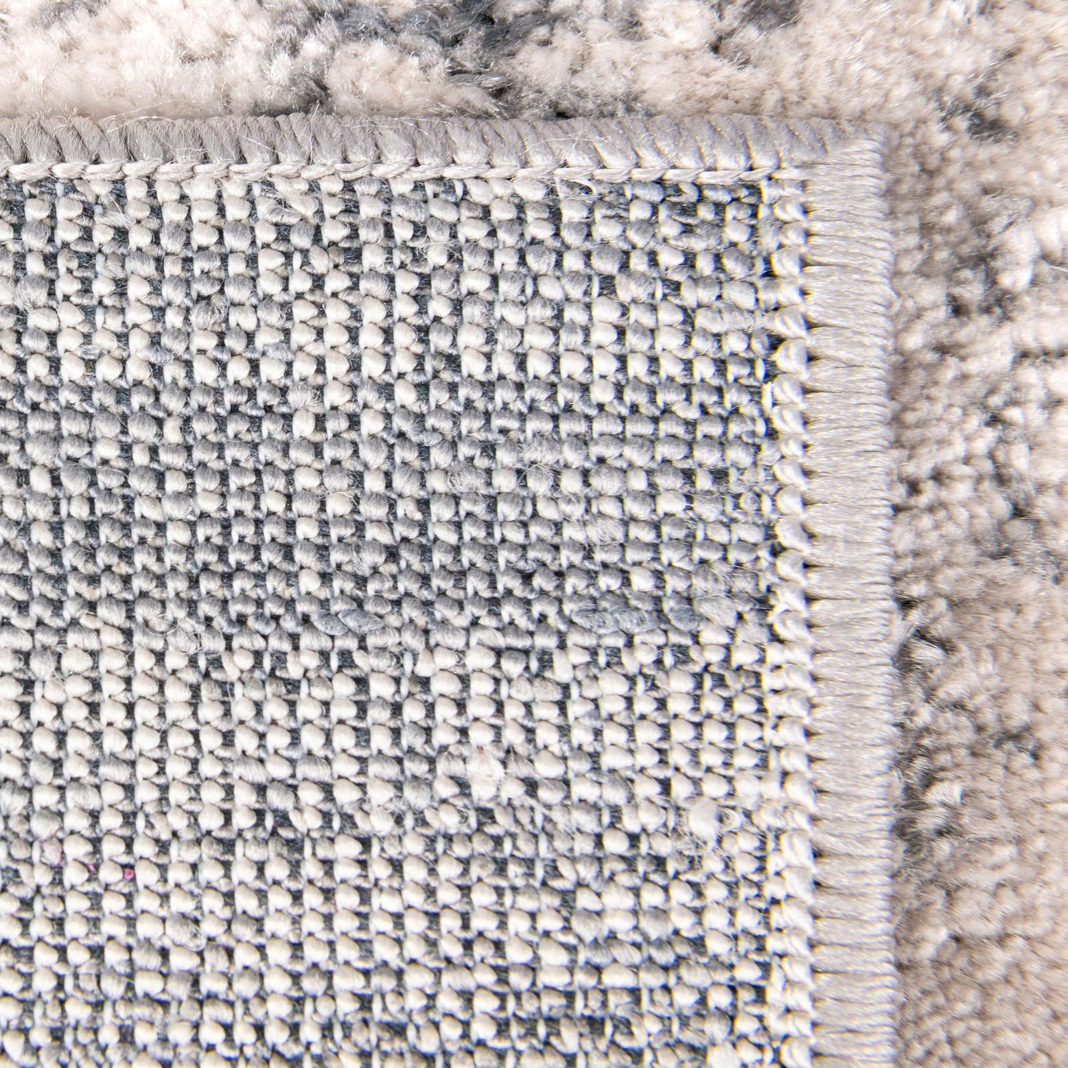 Primary color is Gray. Colors in this rug include: Gray, Beige, Ivory, Navy Blue.
