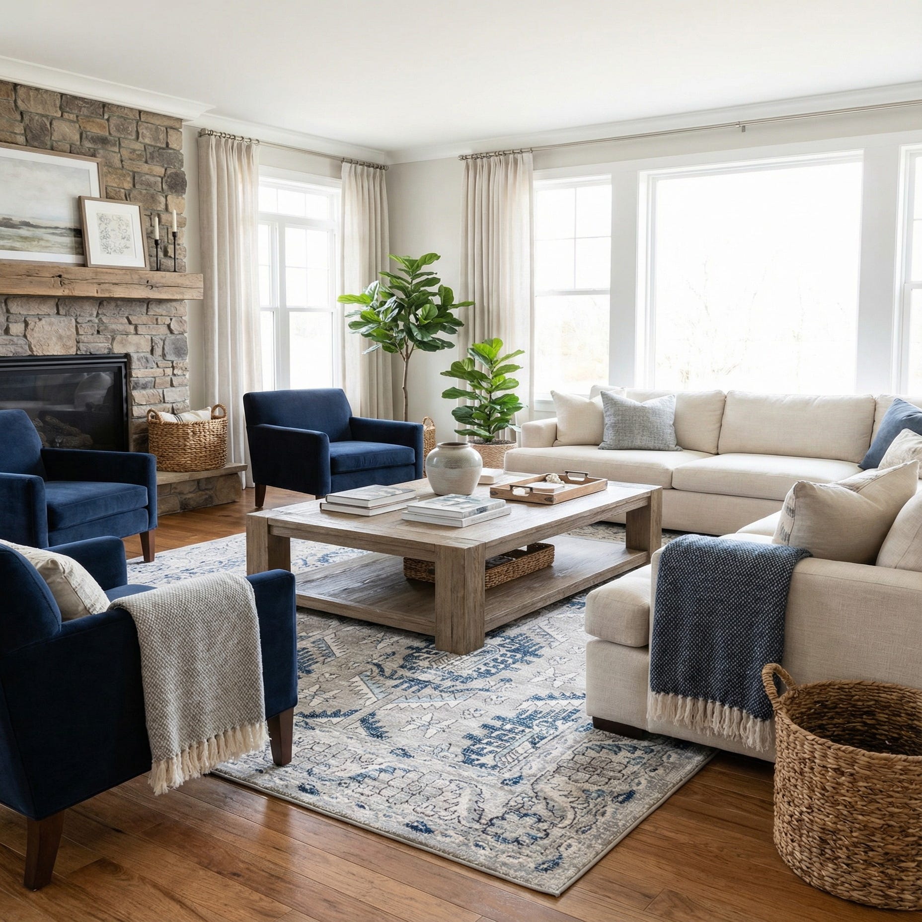 Primary color is Gray. Colors in this rug include: Gray, Black, Blue, Ivory, Light Blue.