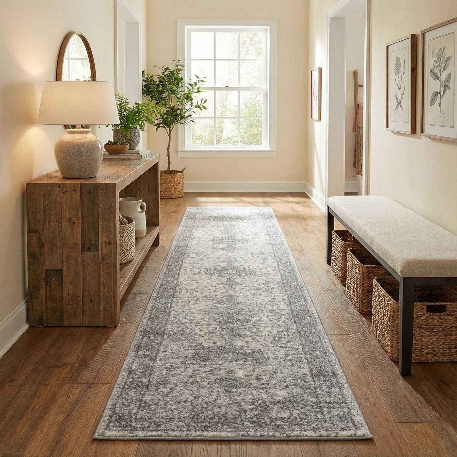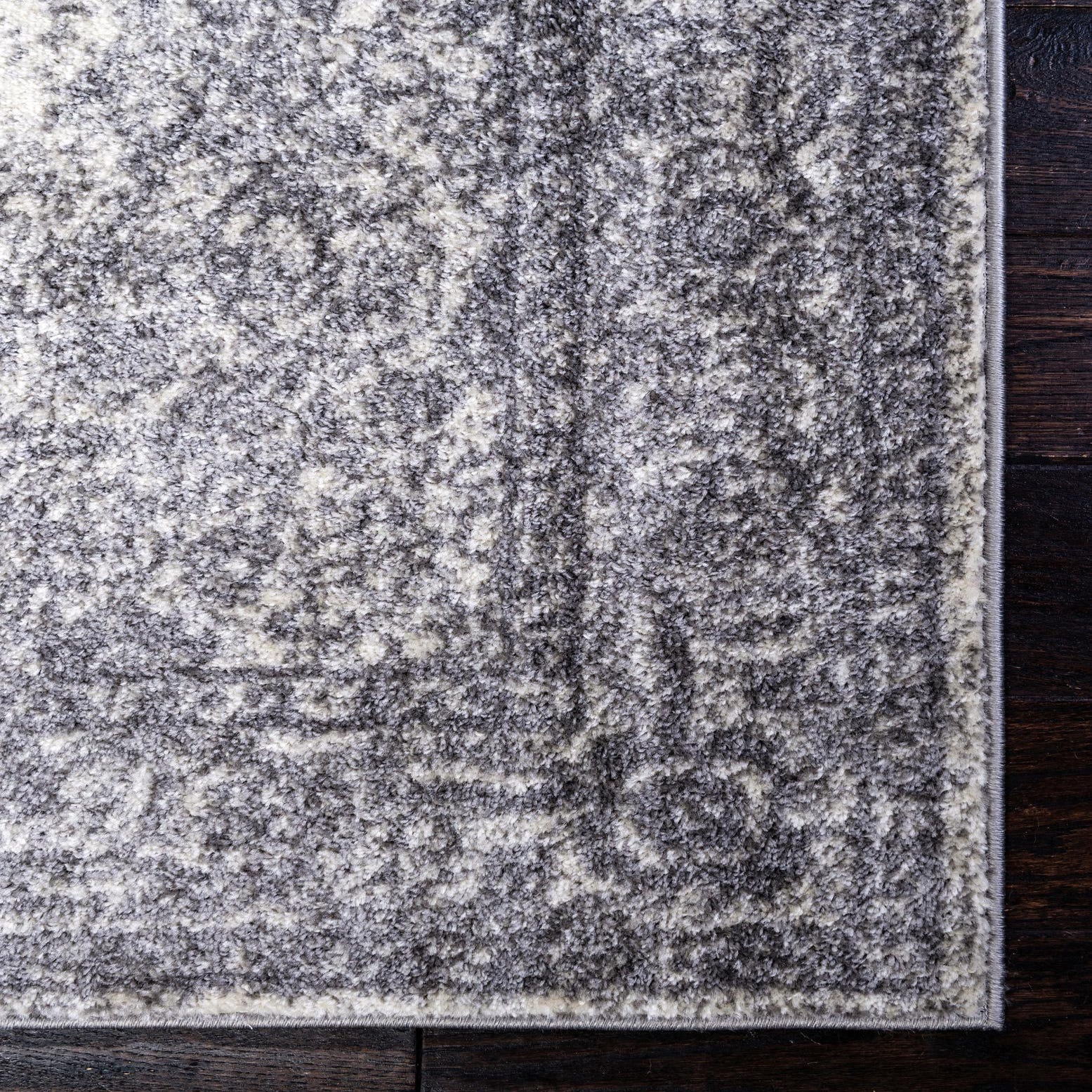 Primary color is Gray. Colors in this rug include: Gray, Ivory.