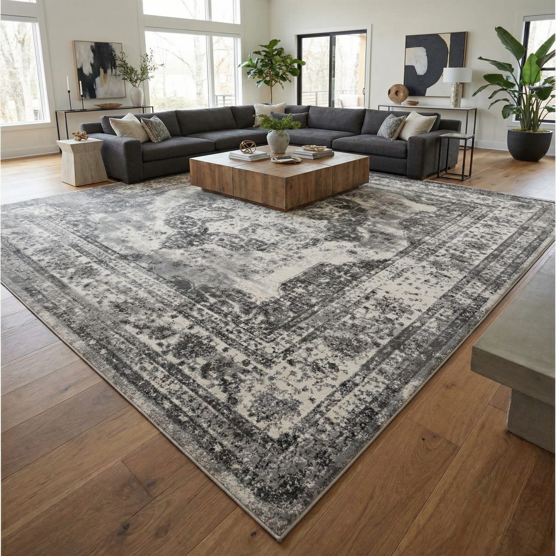 Primary color is Gray. Colors in this rug include: Gray, Beige.