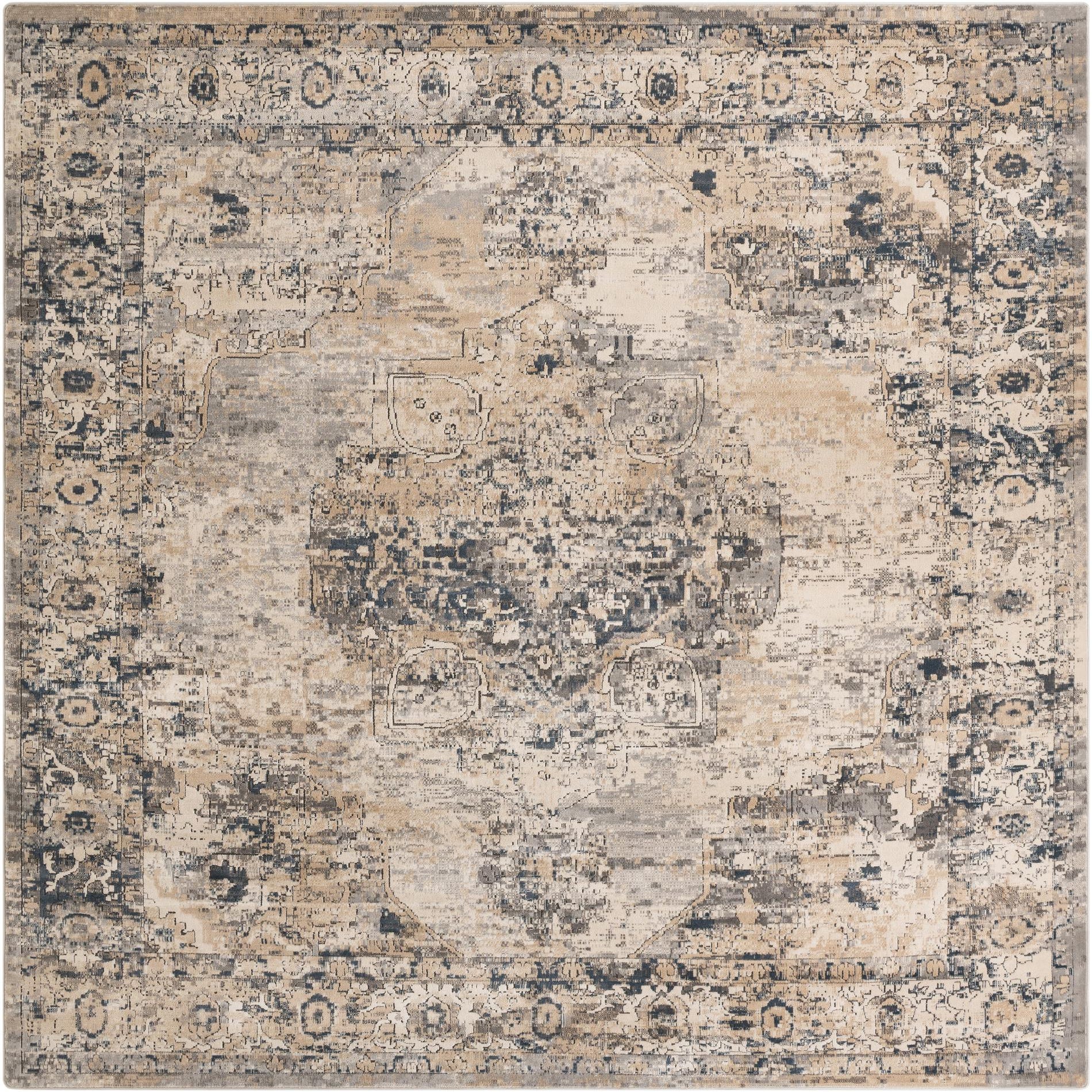 Primary color is Gray. Colors in this rug include: Gray, Beige, Blue.