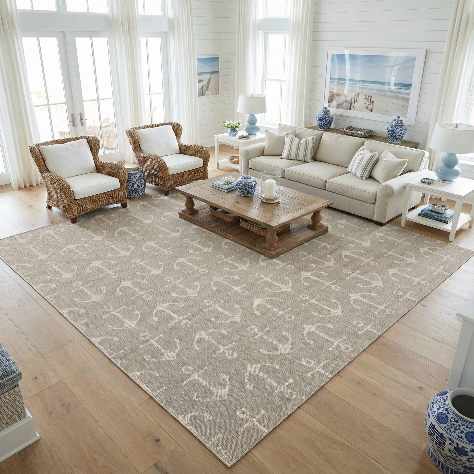 13' x 13' Washable Coastal Indoor / Outdoor Square Rug