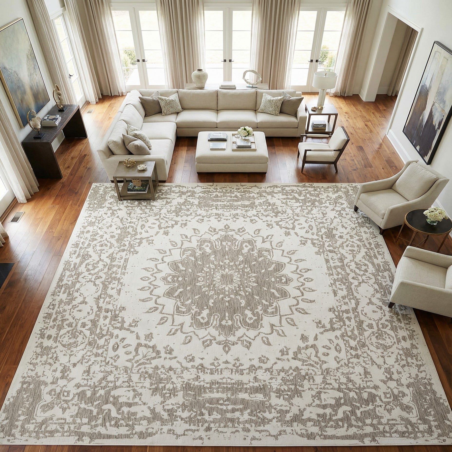 13' x 13' Washable Traditional Indoor / Outdoor Square Rug