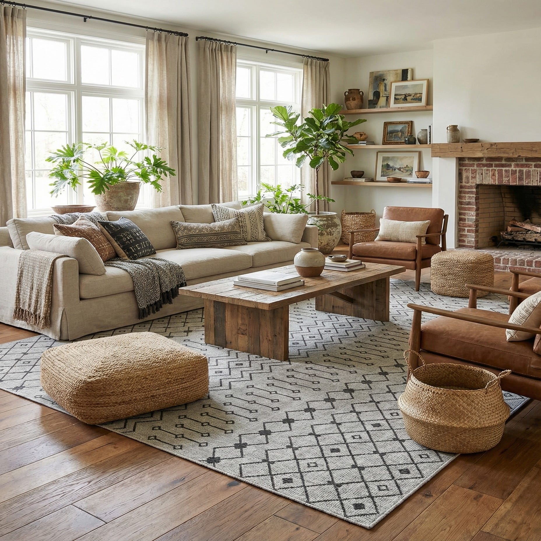 13' x 13' Washable Trellis Indoor / Outdoor Square Rug