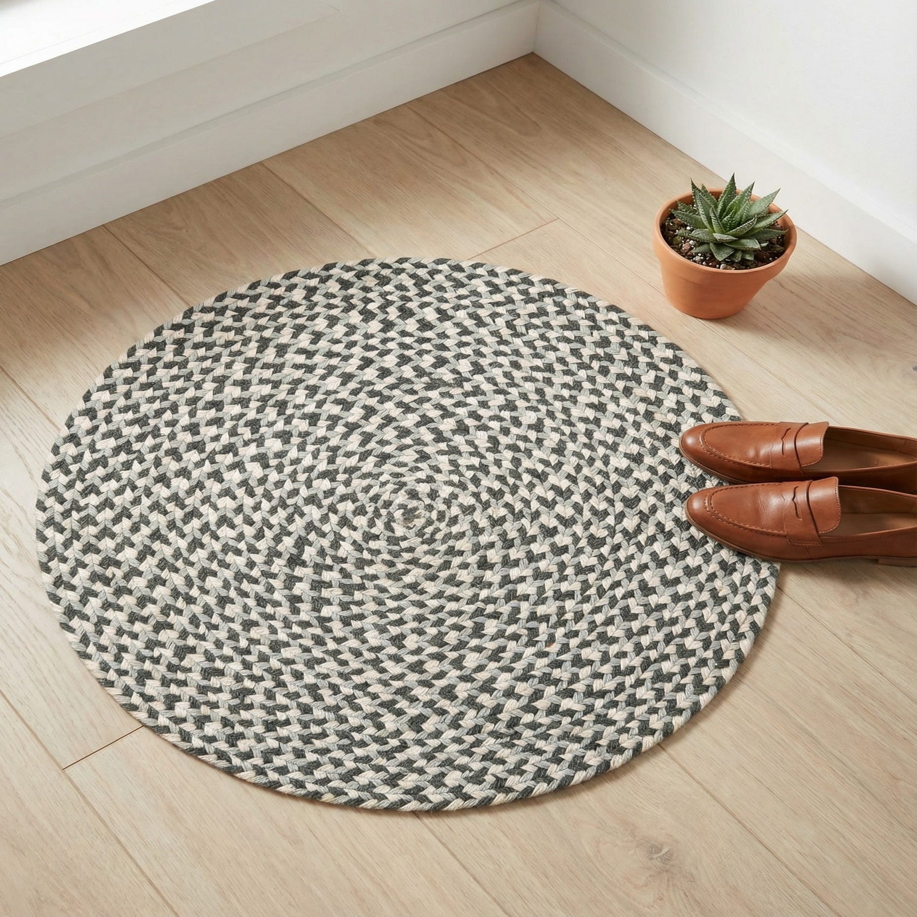 2' x 2' Hand Tweed Braided Jute Round Rug