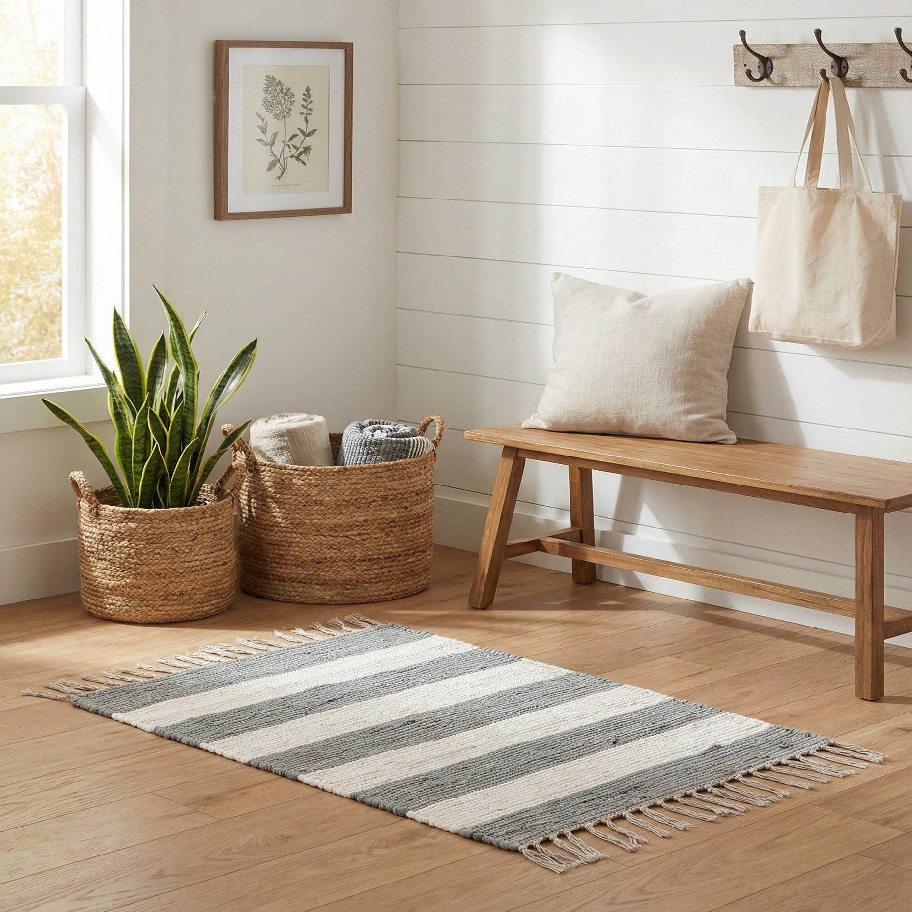 Primary color is Gray. Colors in this rug include: Gray, Ivory.
