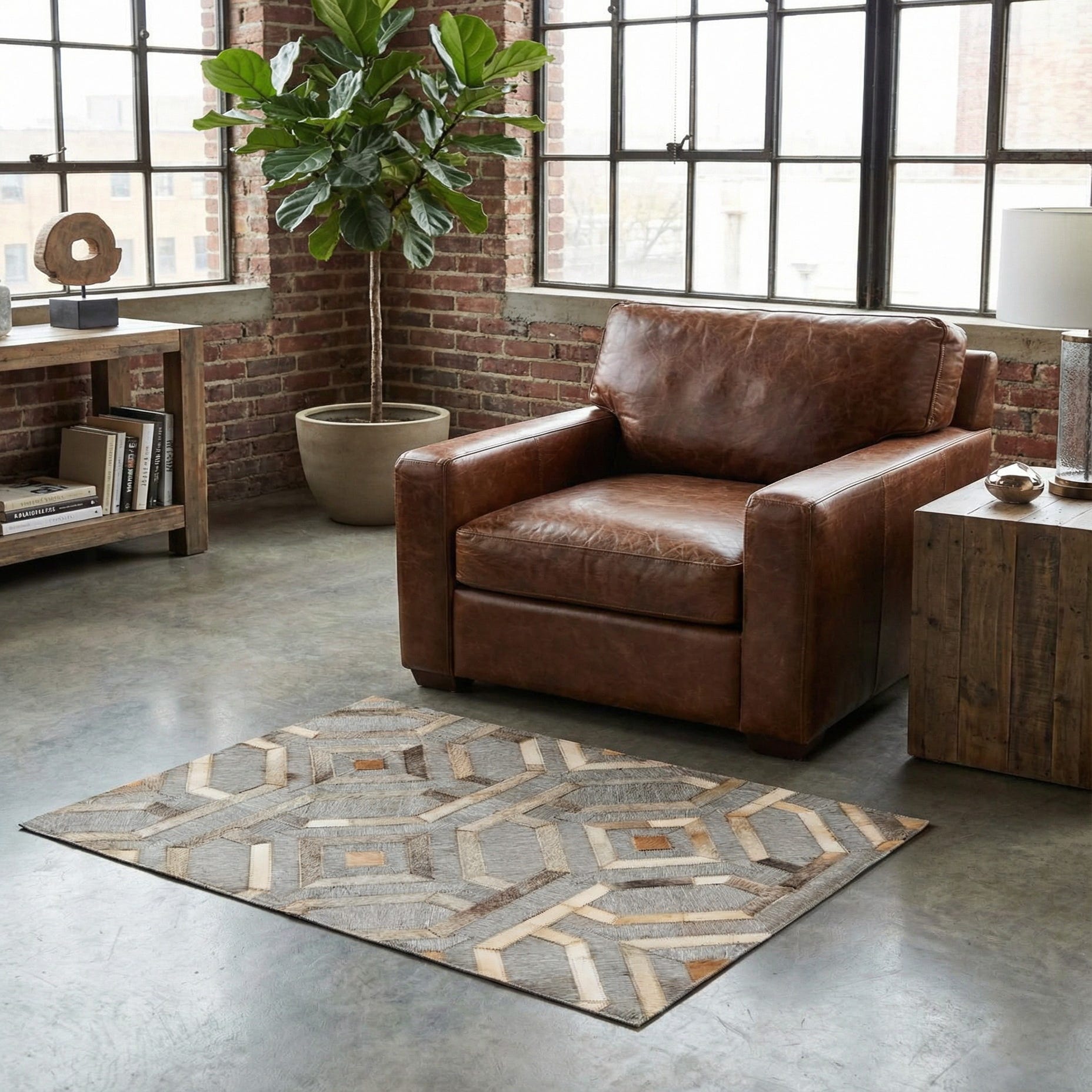 Primary color is Gray. Colors in this rug include: Gray, Brown, Ivory, Black.