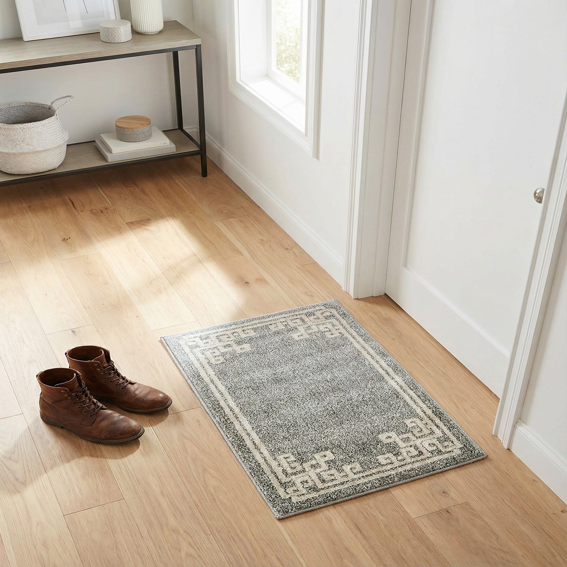 Primary color is Gray. Colors in this rug include: Gray, Beige.