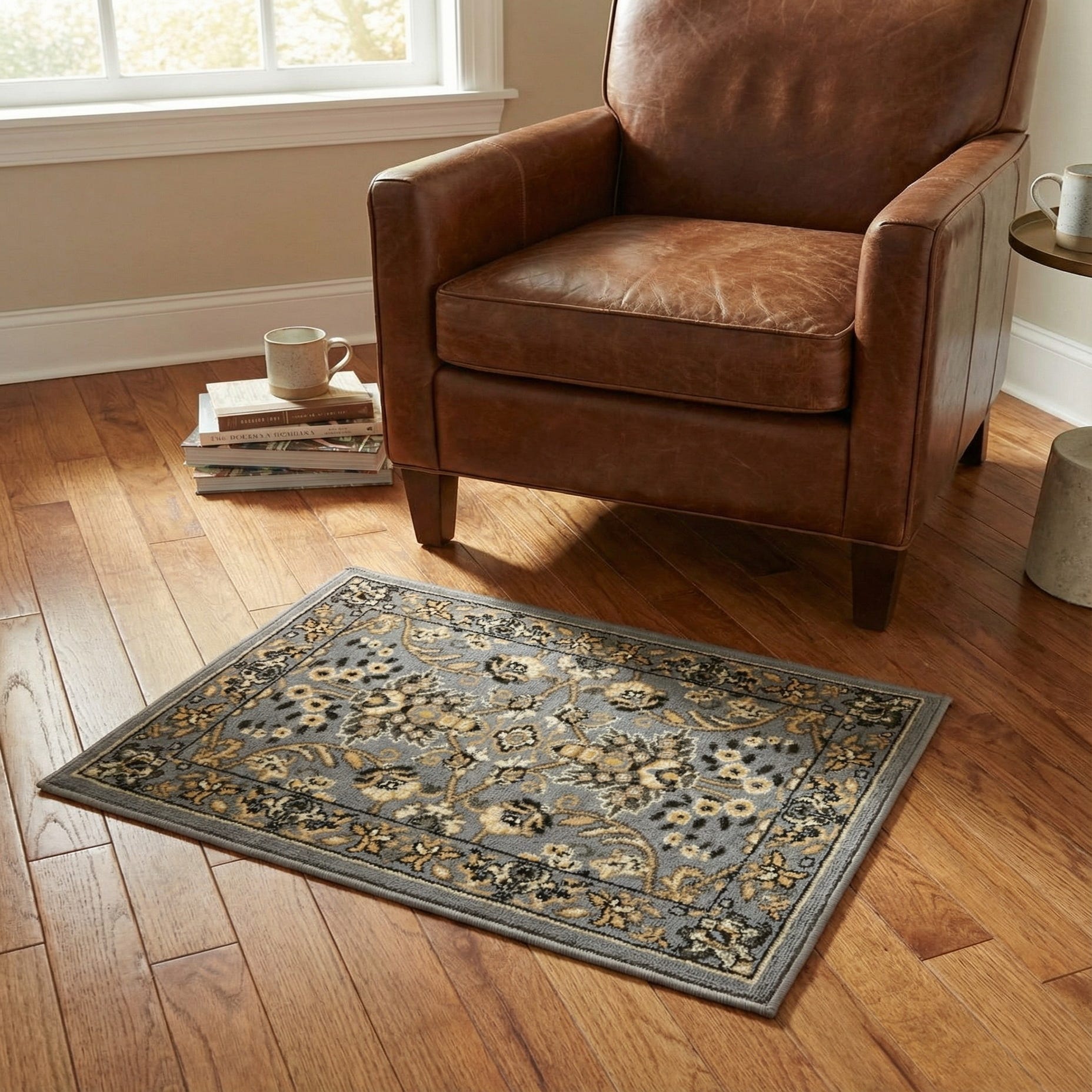 Primary color is Gray. Colors in this rug include: Gray, Black, Tan, Ivory.
