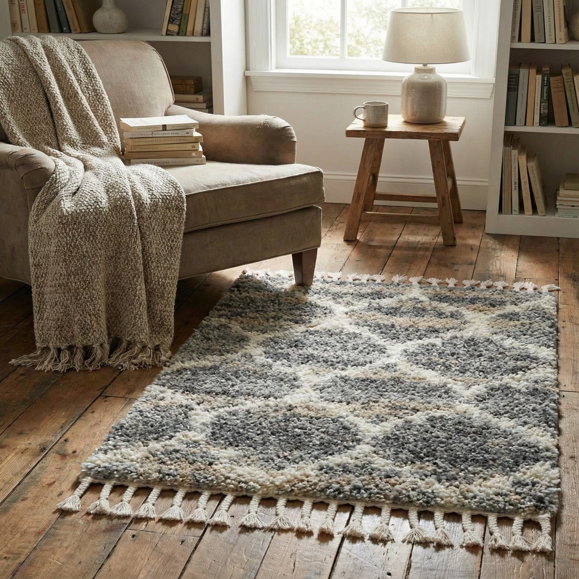 100% Polypropylene with Hand braided fringes