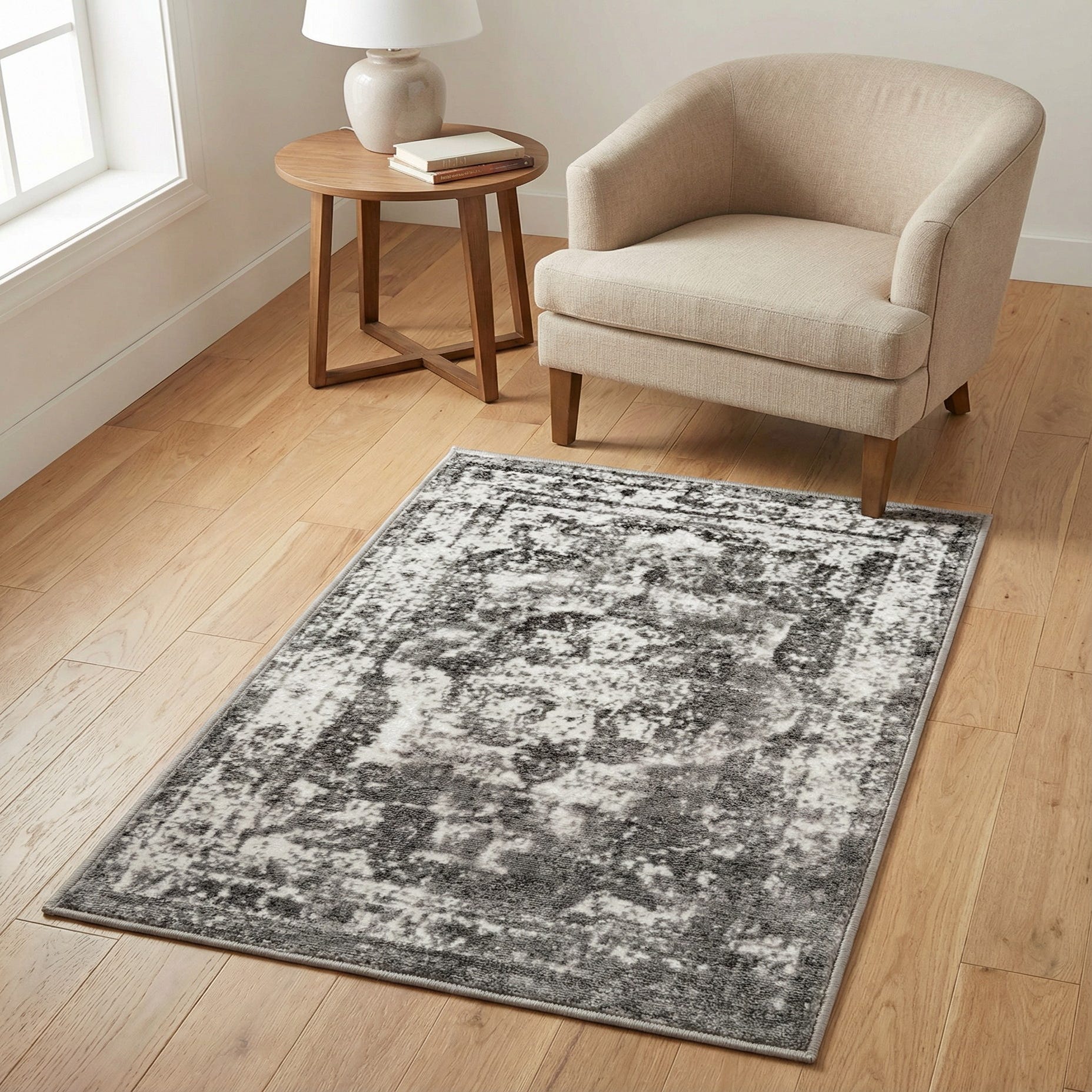 Primary color is Gray. Colors in this rug include: Gray, Beige.