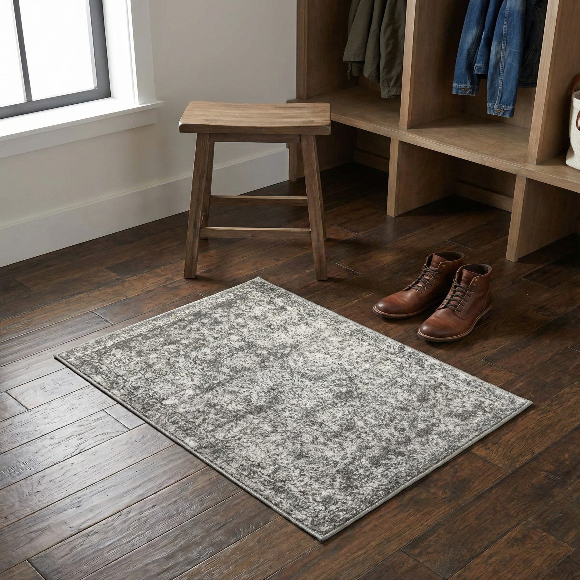 Primary color is Gray. Colors in this rug include: Gray, Ivory.