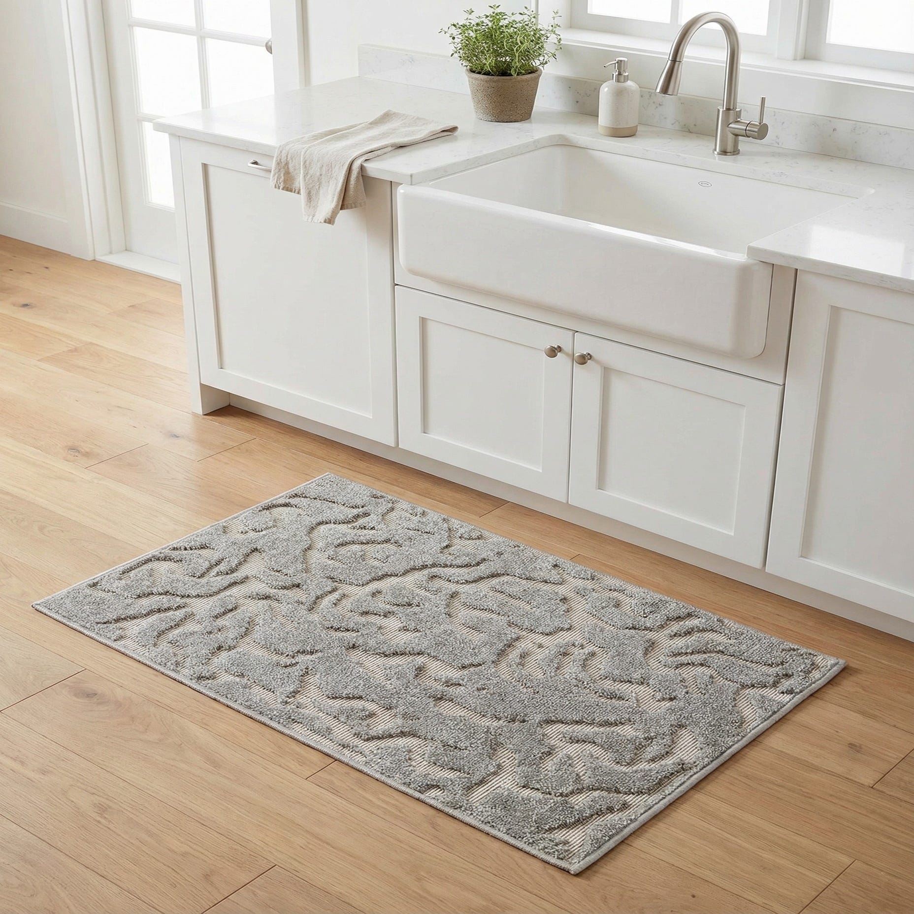 Primary color is Gray. Colors in this rug include: Gray, Ivory.