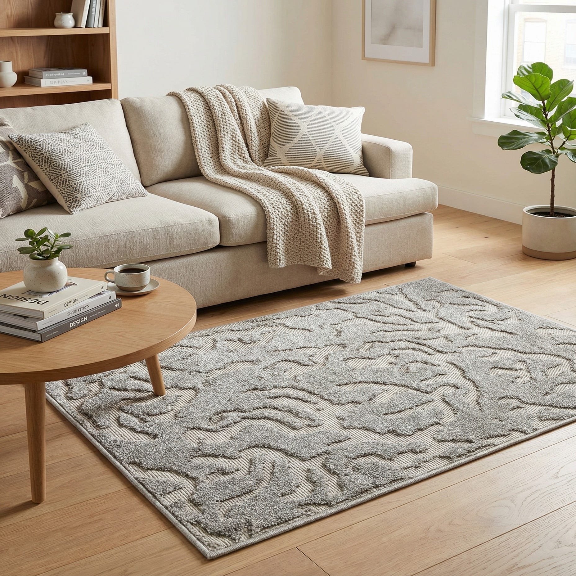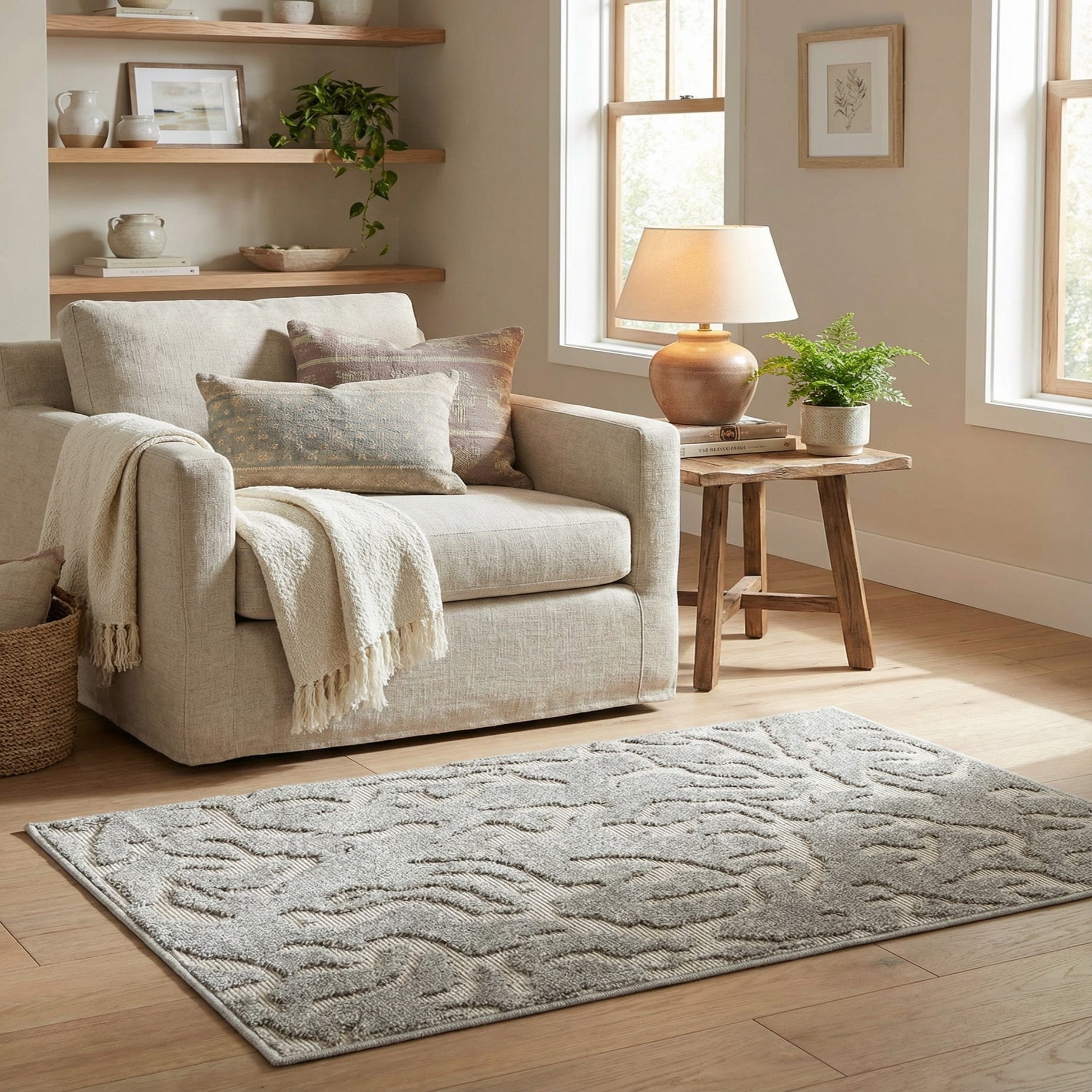 Primary color is Gray. Colors in this rug include: Gray, Ivory.