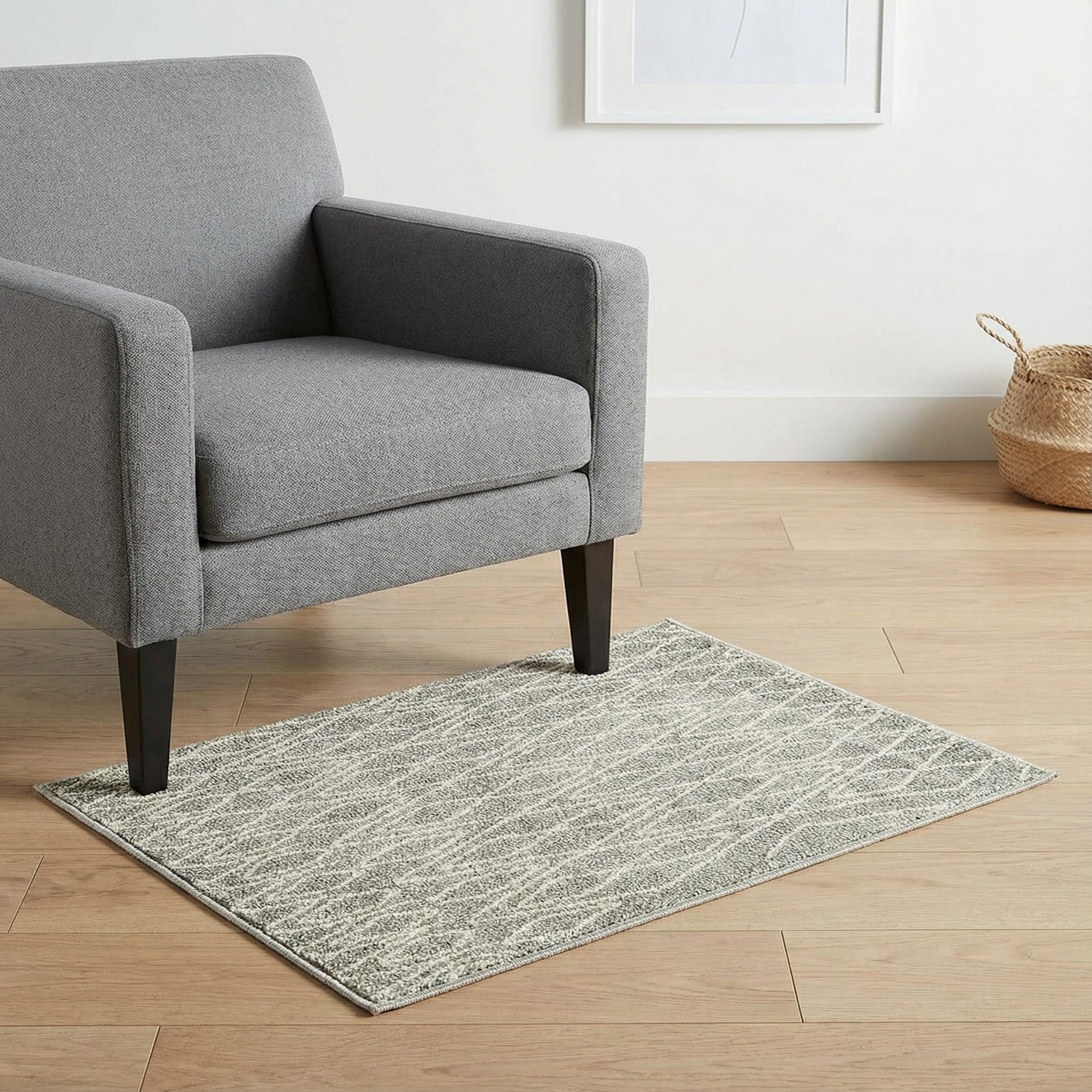 Primary color is Gray. Colors in this rug include: Gray, Beige.