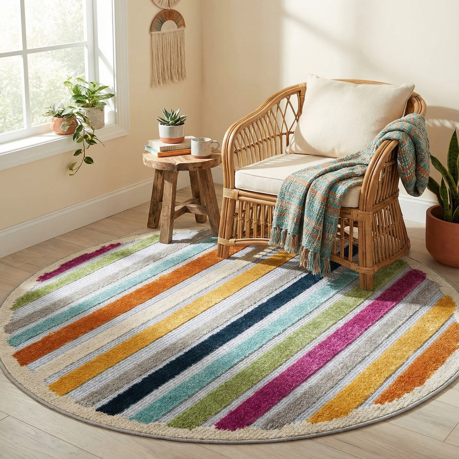 3' 3 x 3' 3 Washable Aruba Indoor / Outdoor Round Rug