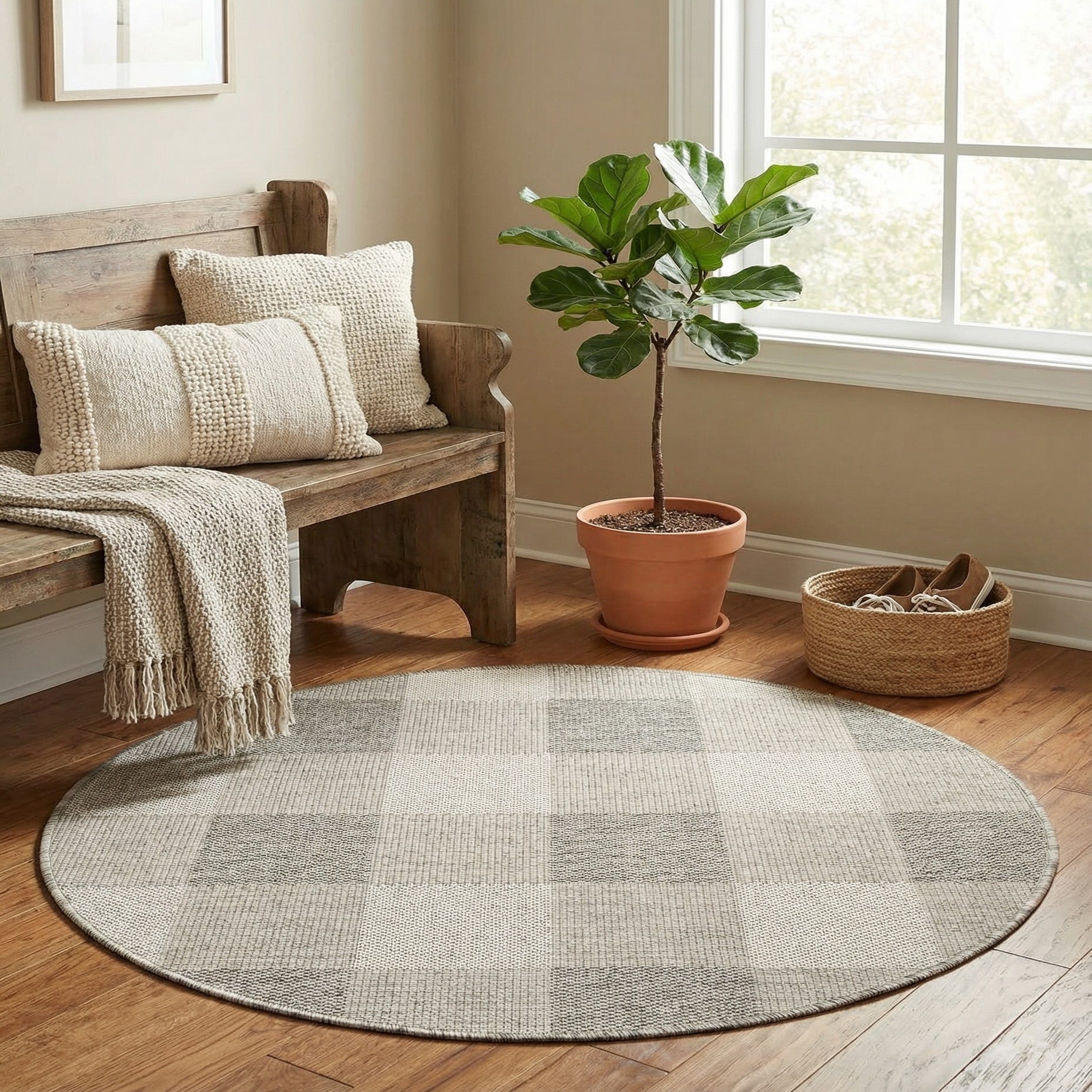 3' x 3' Washable Checkered Indoor / Outdoor Round Rug