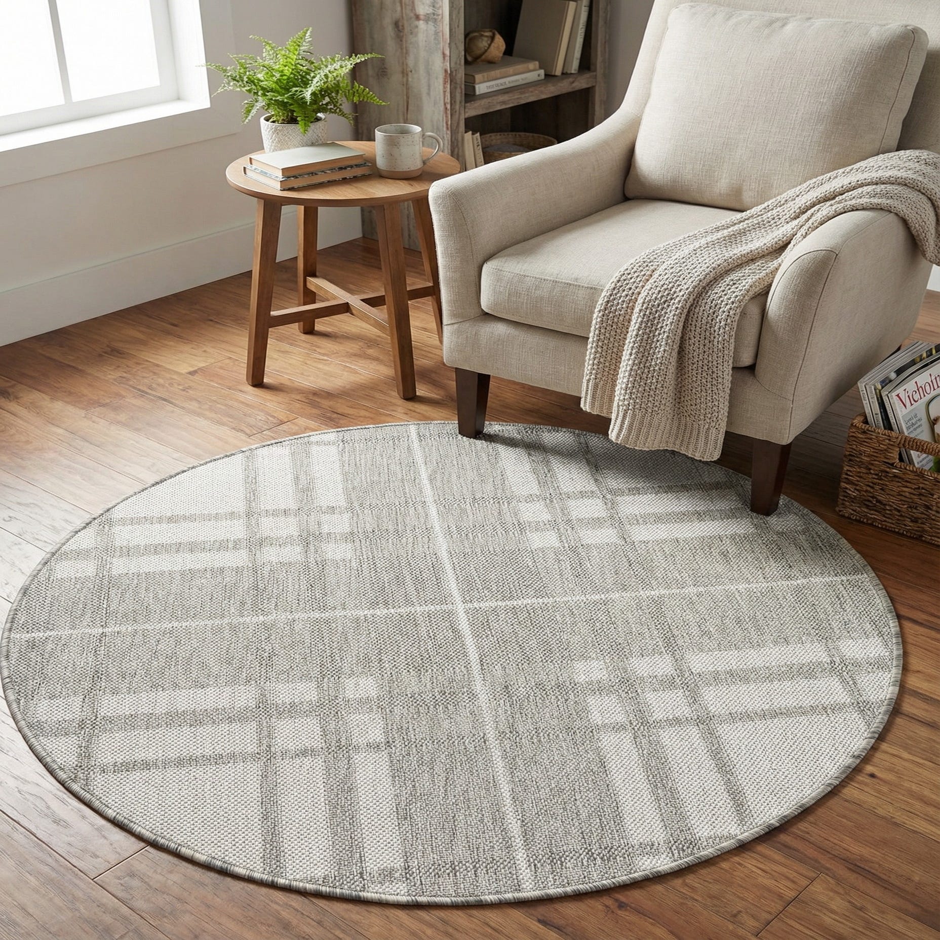 3' x 3' Washable Checkered Indoor / Outdoor Round Rug