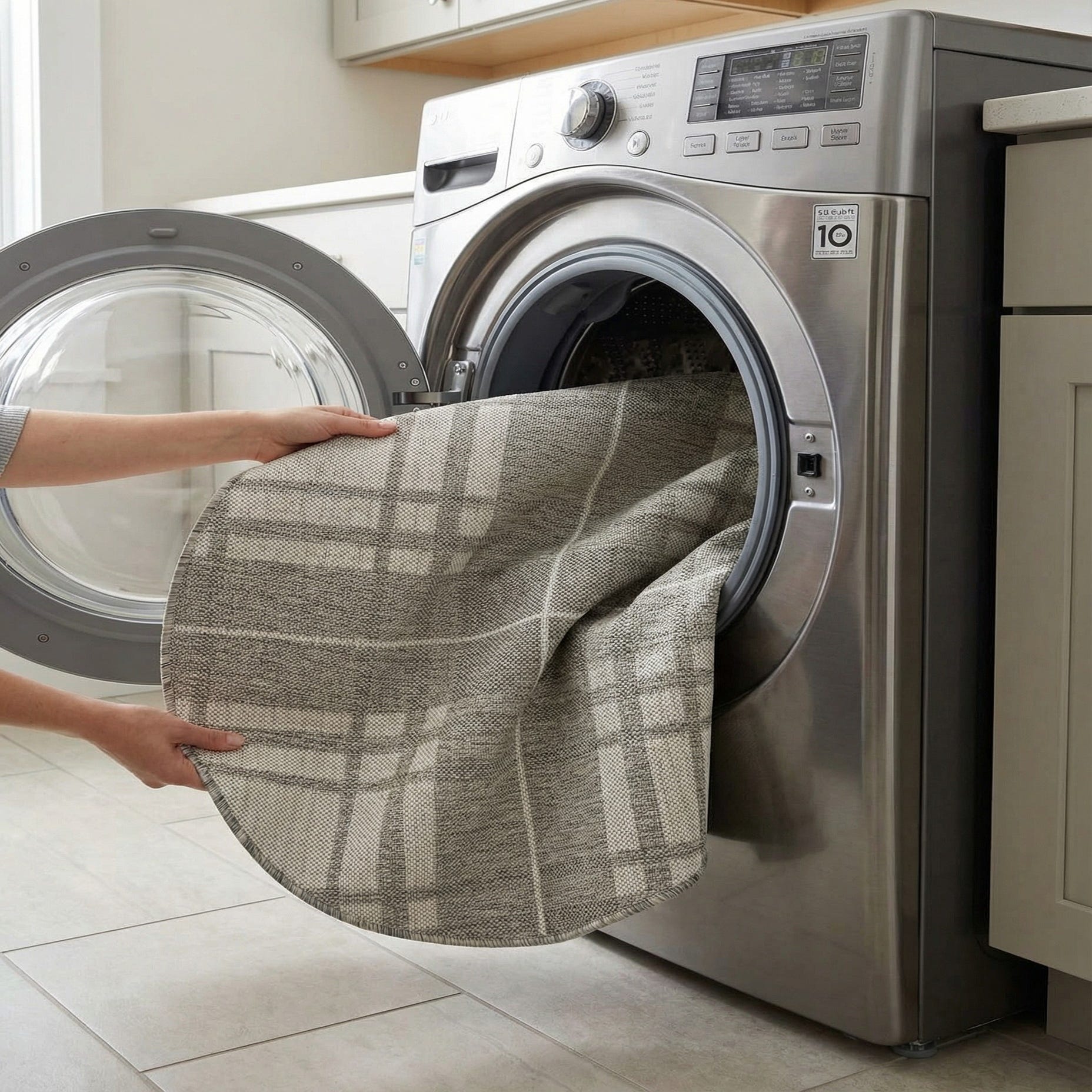 3' x 3' Washable Checkered Indoor / Outdoor Round Rug