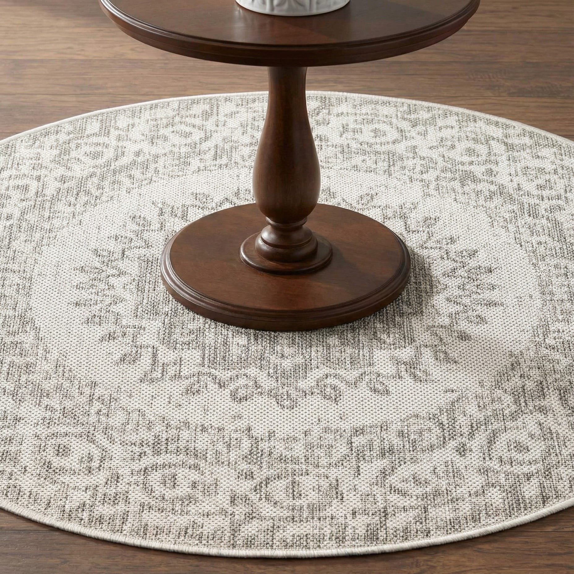 Detail image of 3' x 3'  Washable Traditional Indoor / Outdoor Round Rug