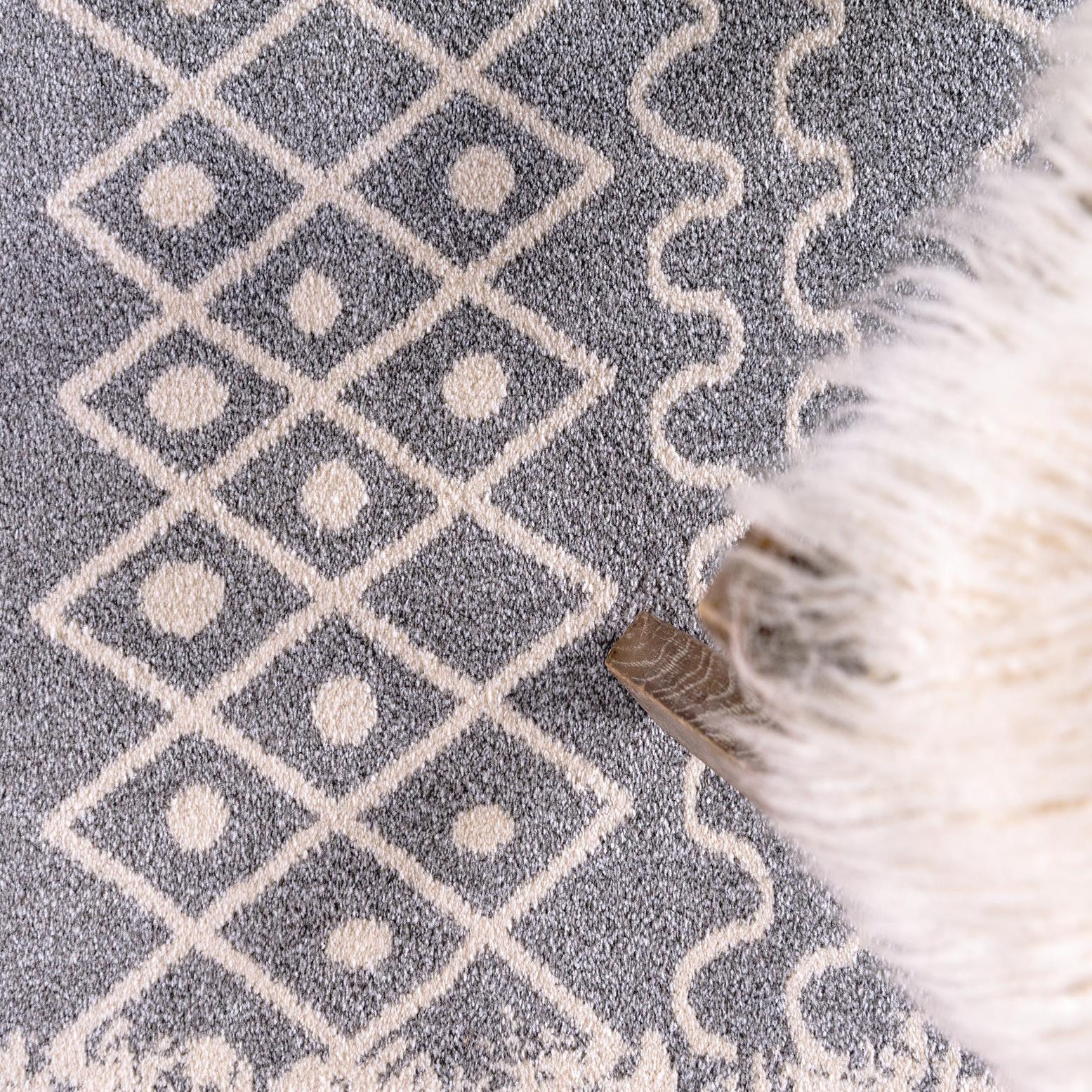 Primary color is Gray. Colors in this rug include: Gray, Ivory.