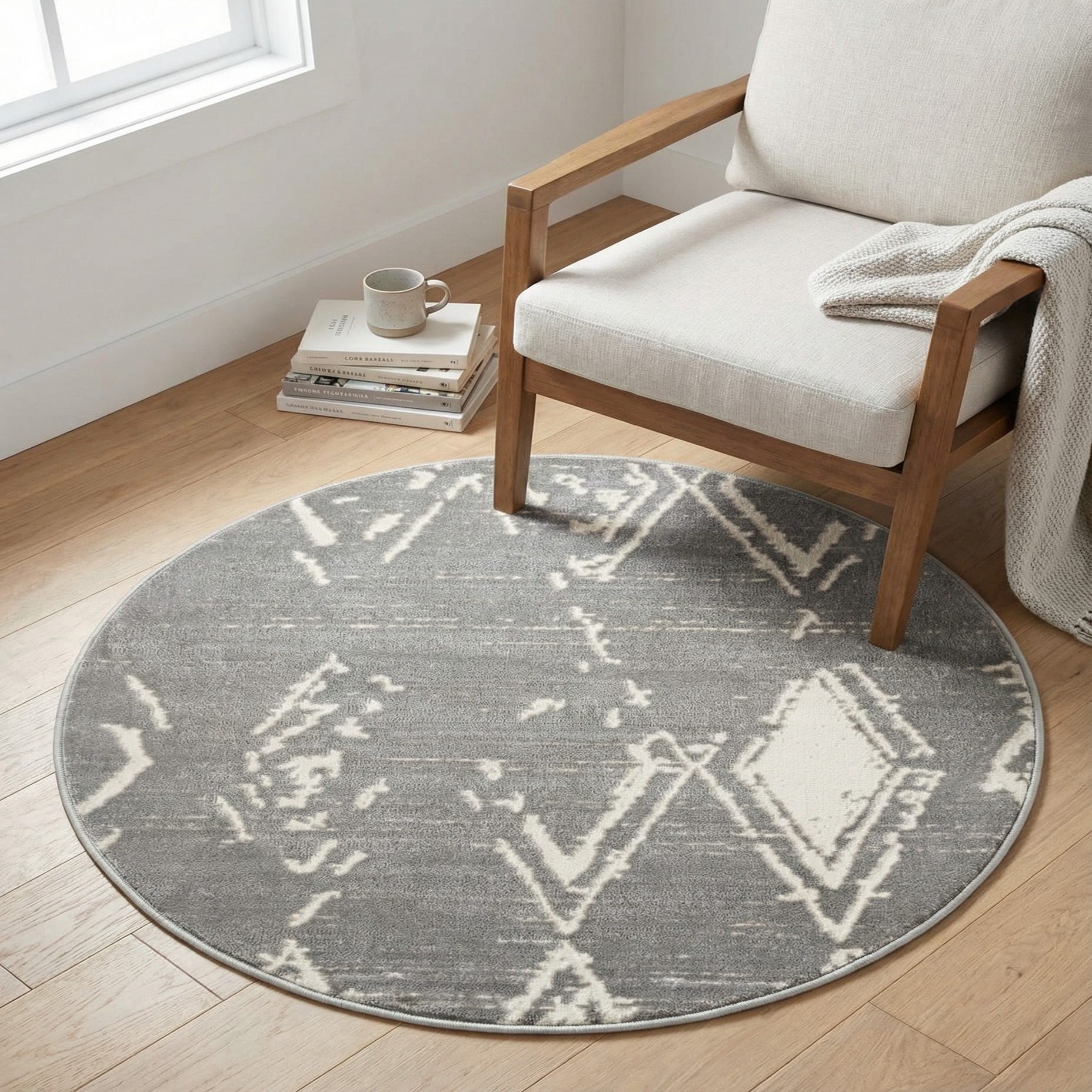 Primary color is Gray. Colors in this rug include: Gray, Ivory.