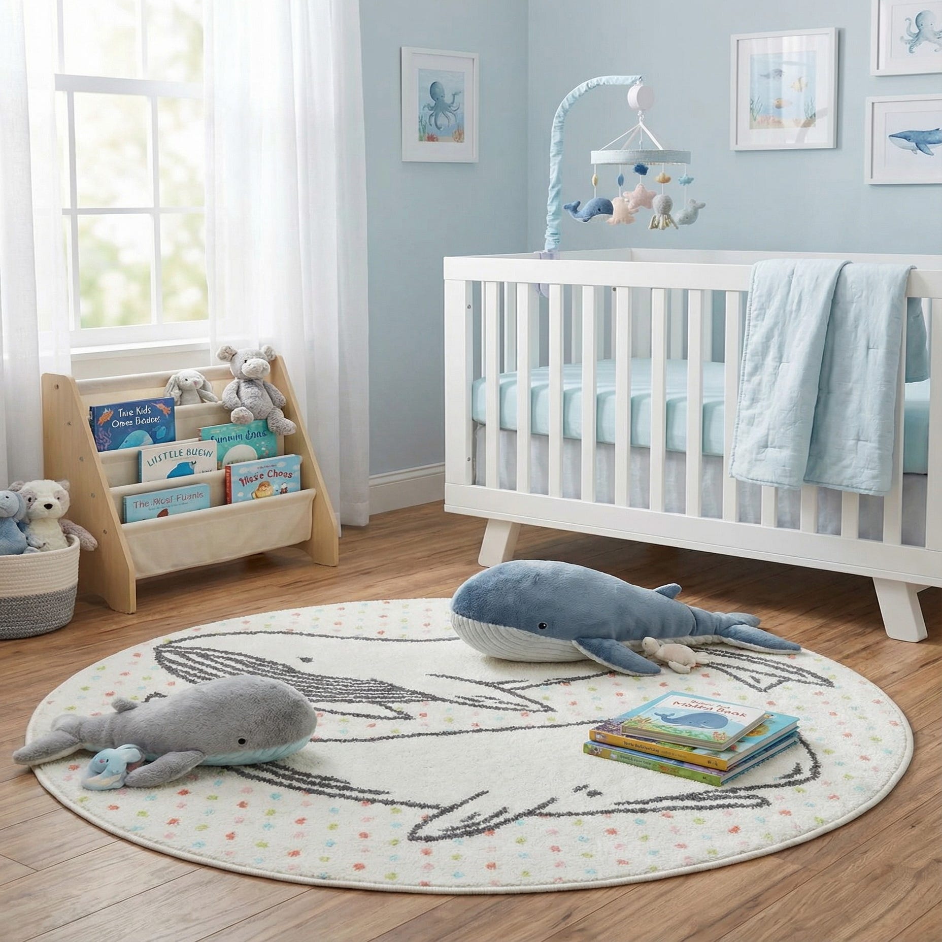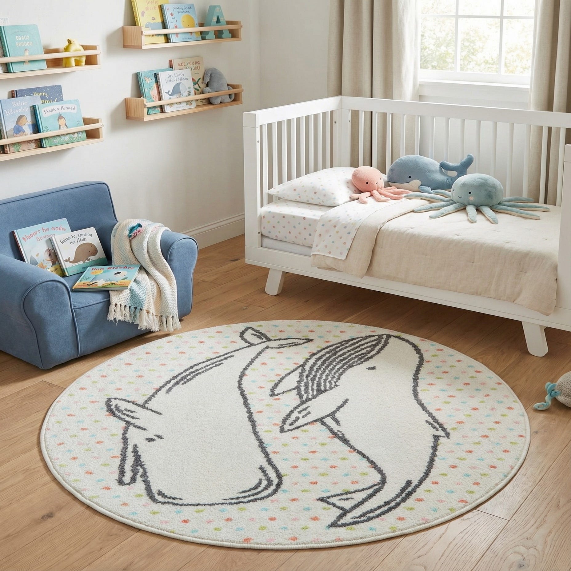 3' 3 x 3' 3 Whale Whimsy Kids Round Rug