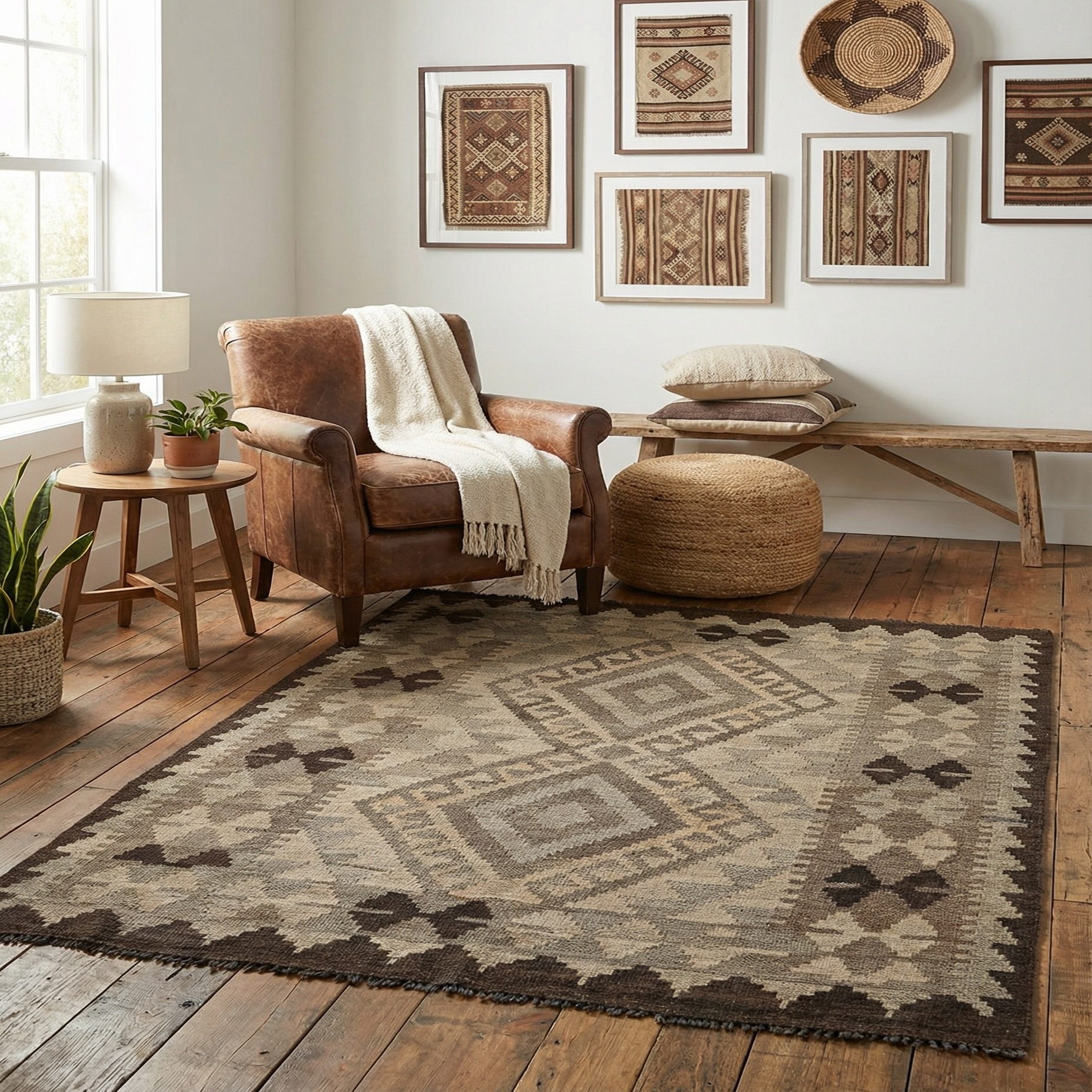 3' 4 x 4' 1 Hand Woven Kilim Maymana Wool Rug