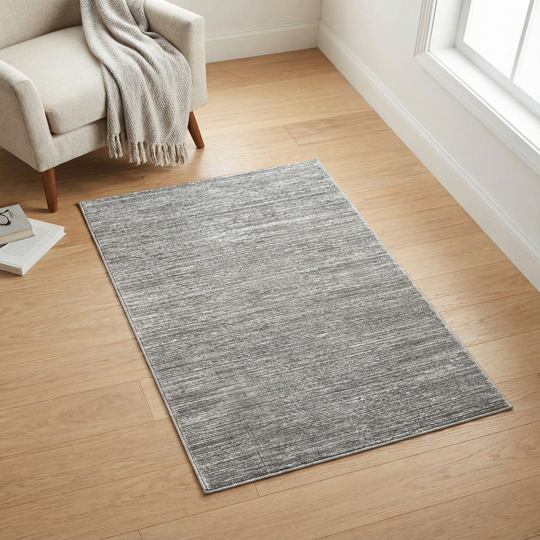 Primary color is Gray. Colors in this rug include: Gray, Ivory.