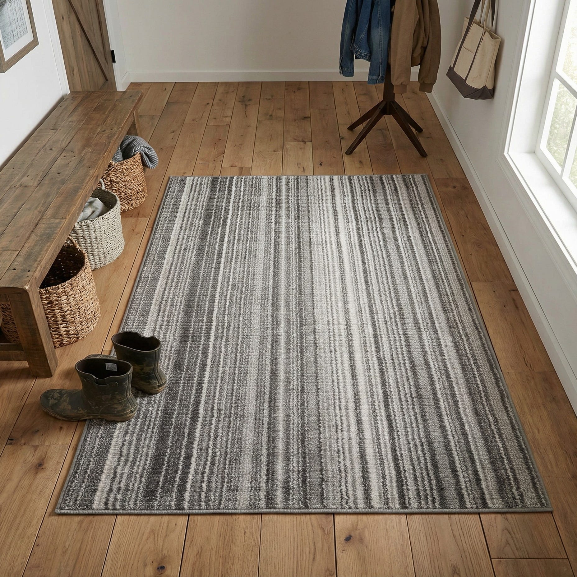 Primary color is Gray. Colors in this rug include: Gray, Ivory.