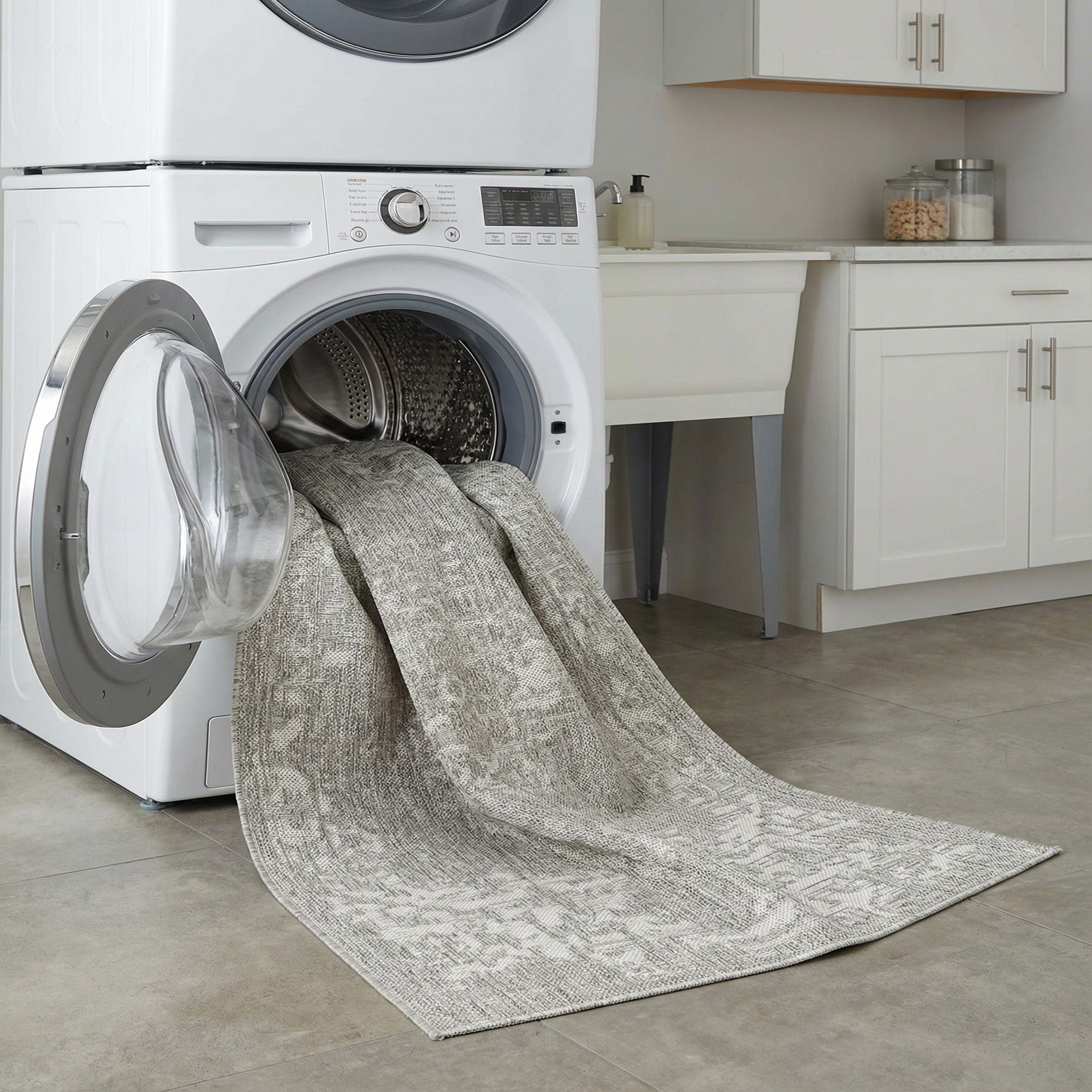 Primary color is Gray. Colors in this rug include: Gray, Ivory.