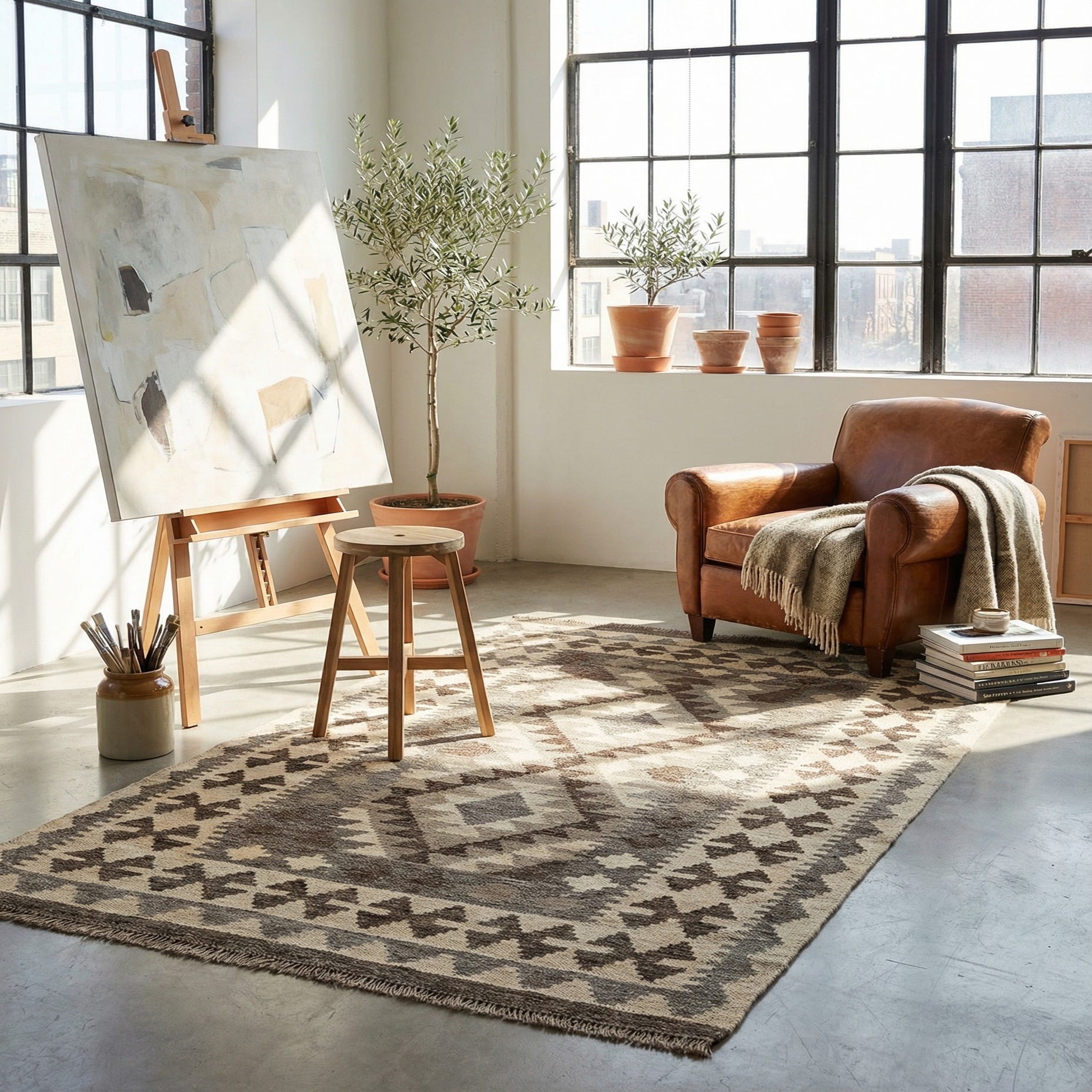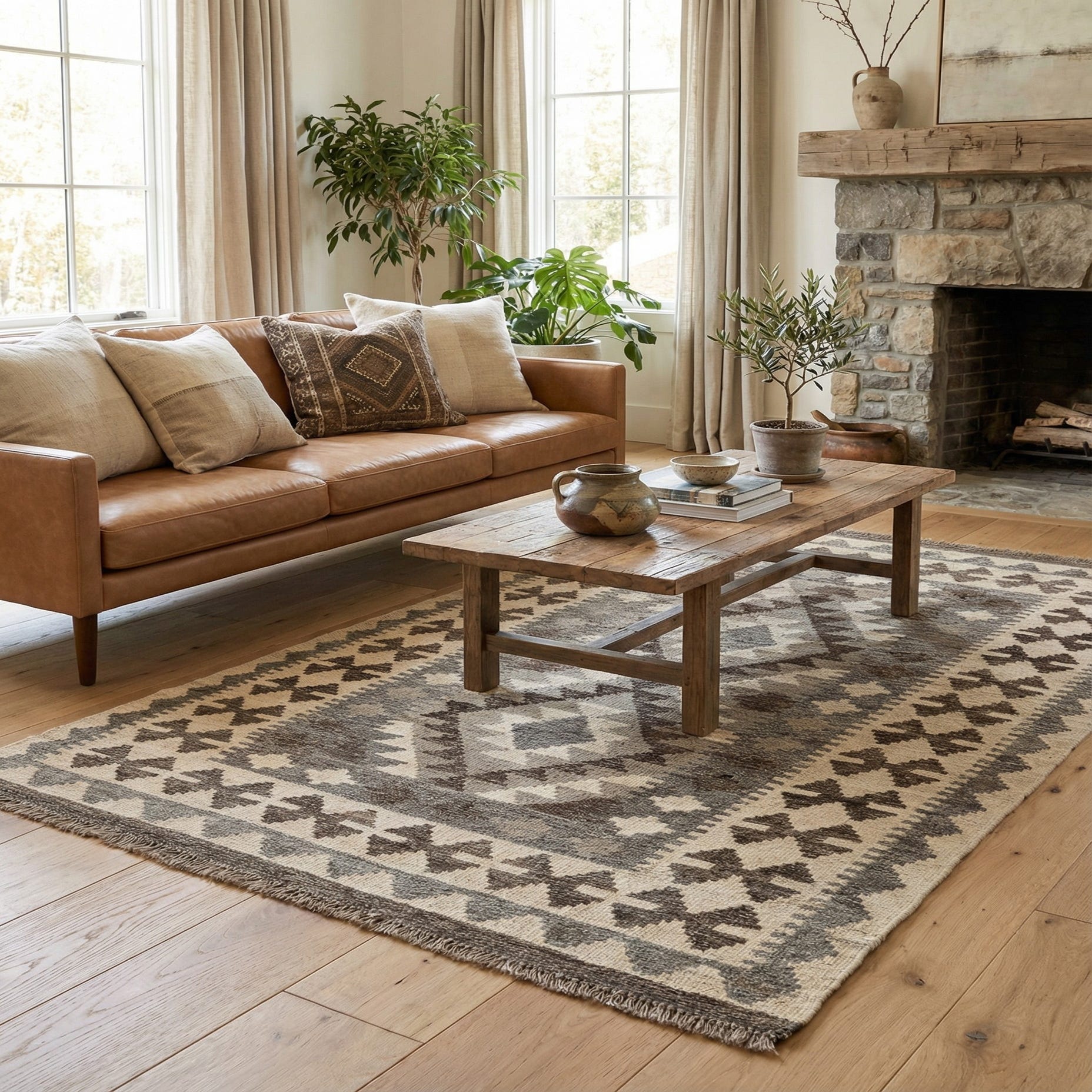 3' 3 x 4' 11 Hand Woven Kilim Maymana Wool Rug