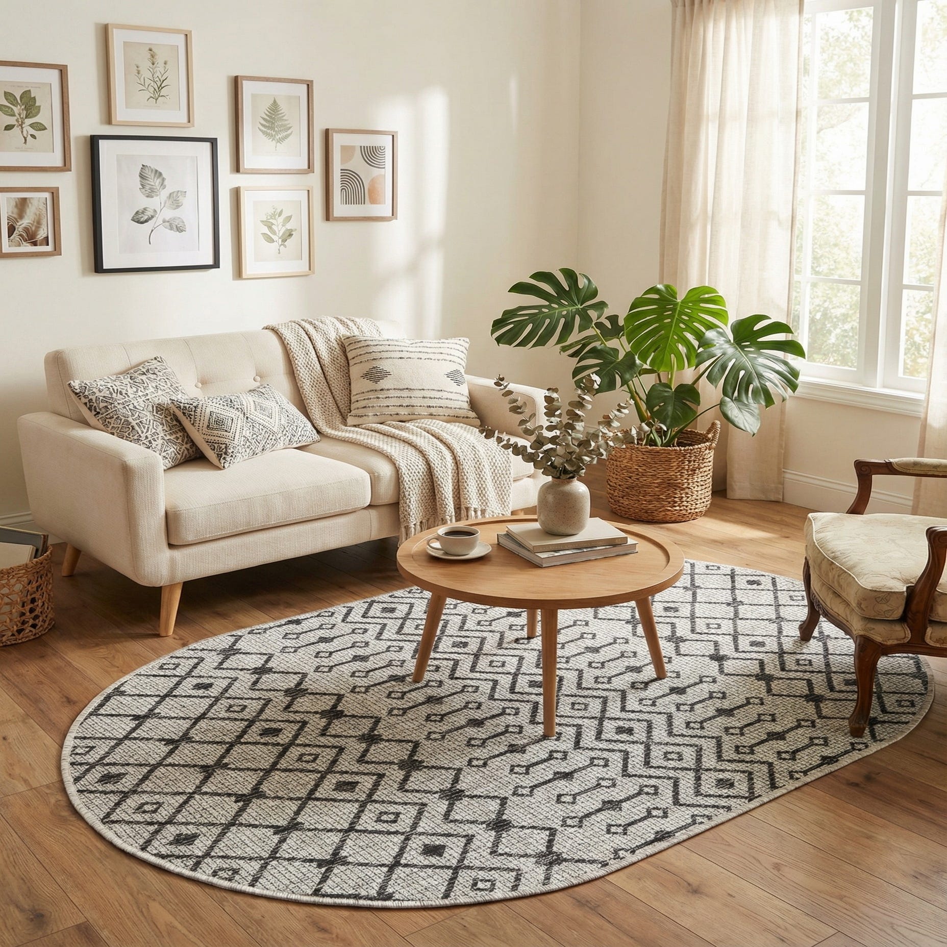 3' x 5' 3 Washable Trellis Indoor / Outdoor Oval Rug