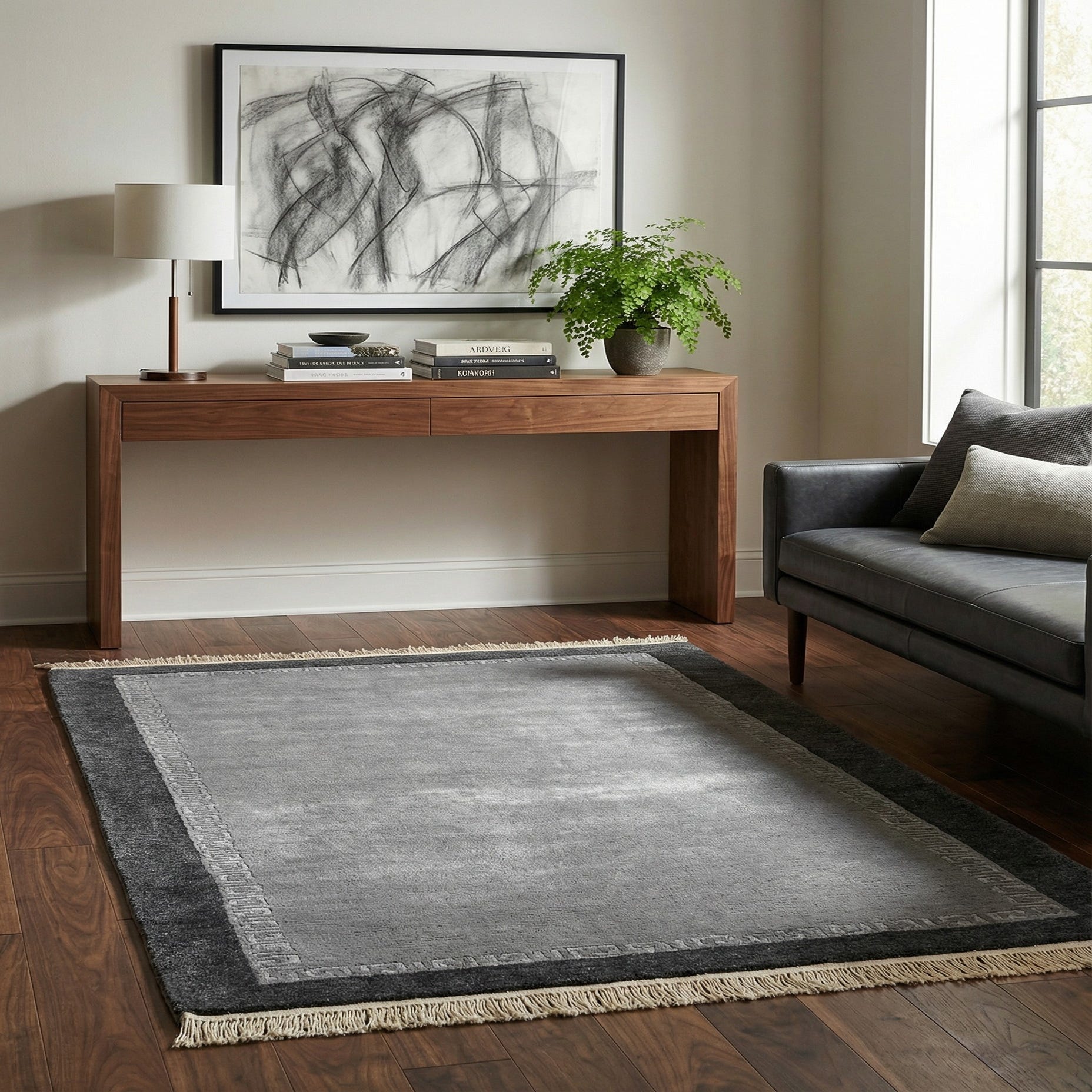 Primary color is Gray. Colors in this rug include: Gray, Black, Silver.